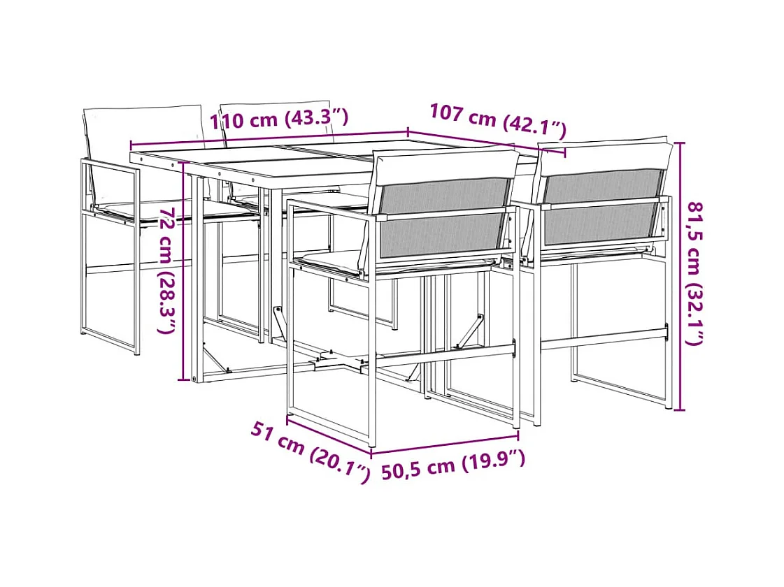 Robert-Luc 5-delige Tuinset met kussens poly rattan zwart