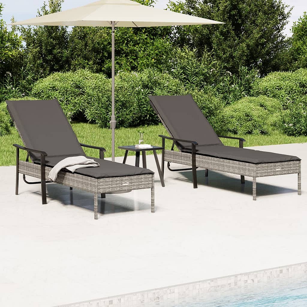 François-Daniel Ligbedden 2 st met tafel en kussens poly rattan grijs