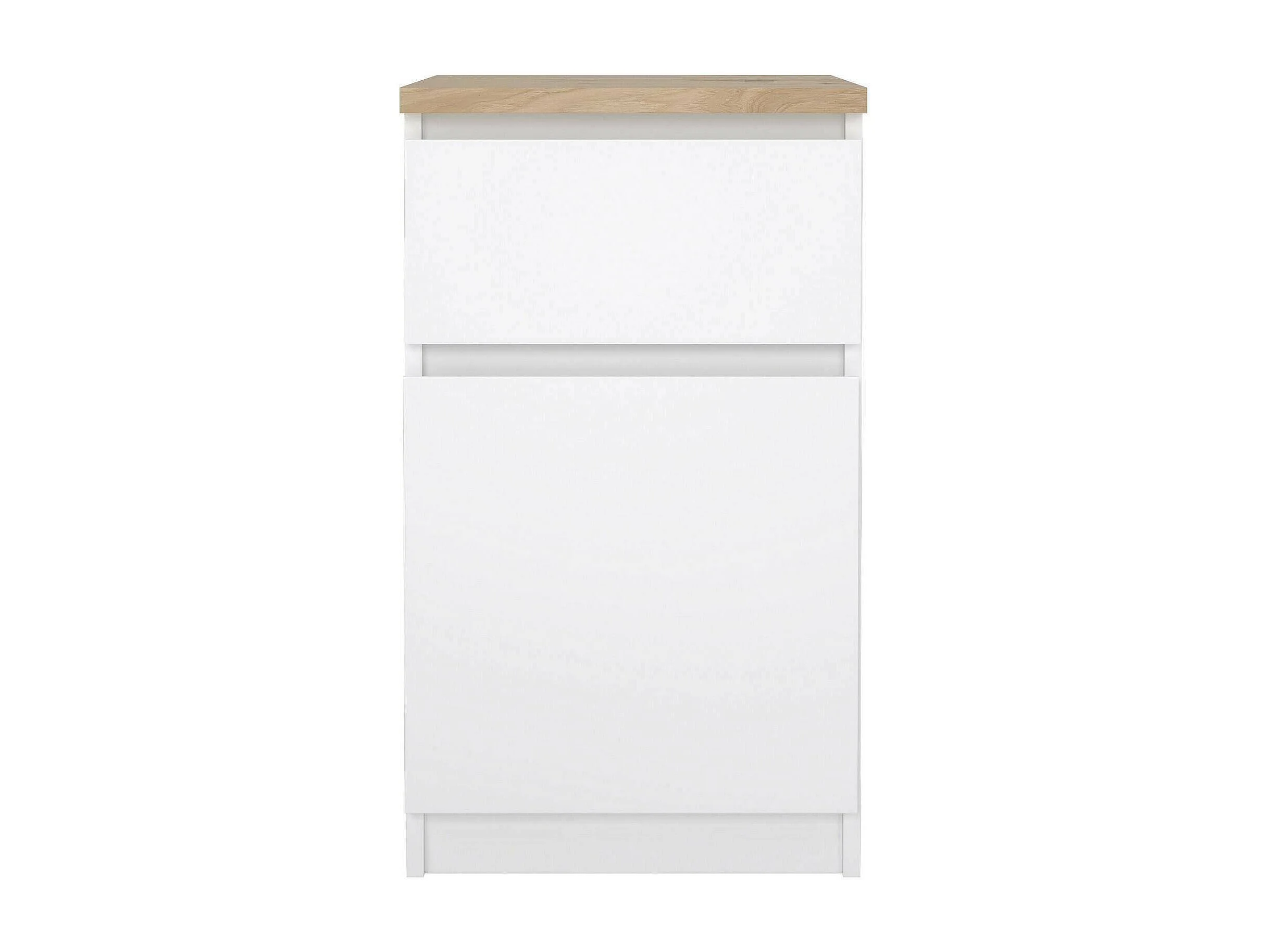 Francoise nachtkastje, Lage ladekast, Nachtkastje, Bedplank, 40x40 h70 cm, Wit en Eiken