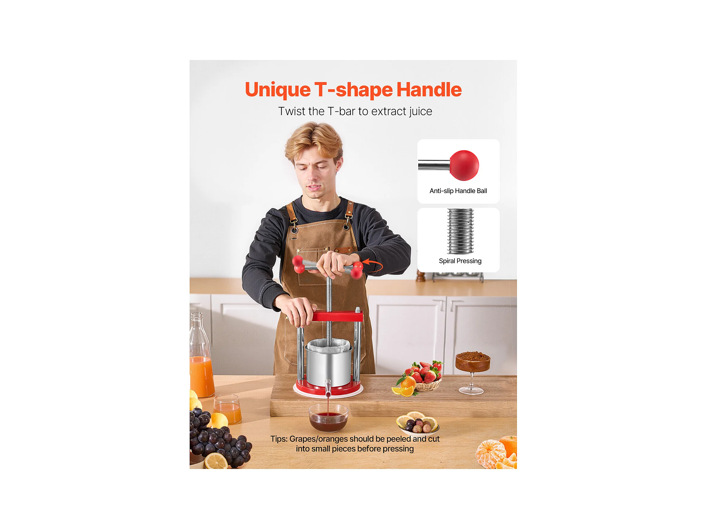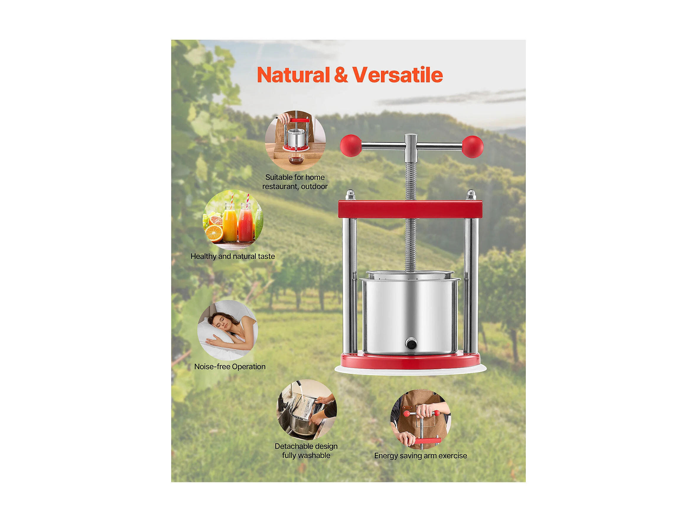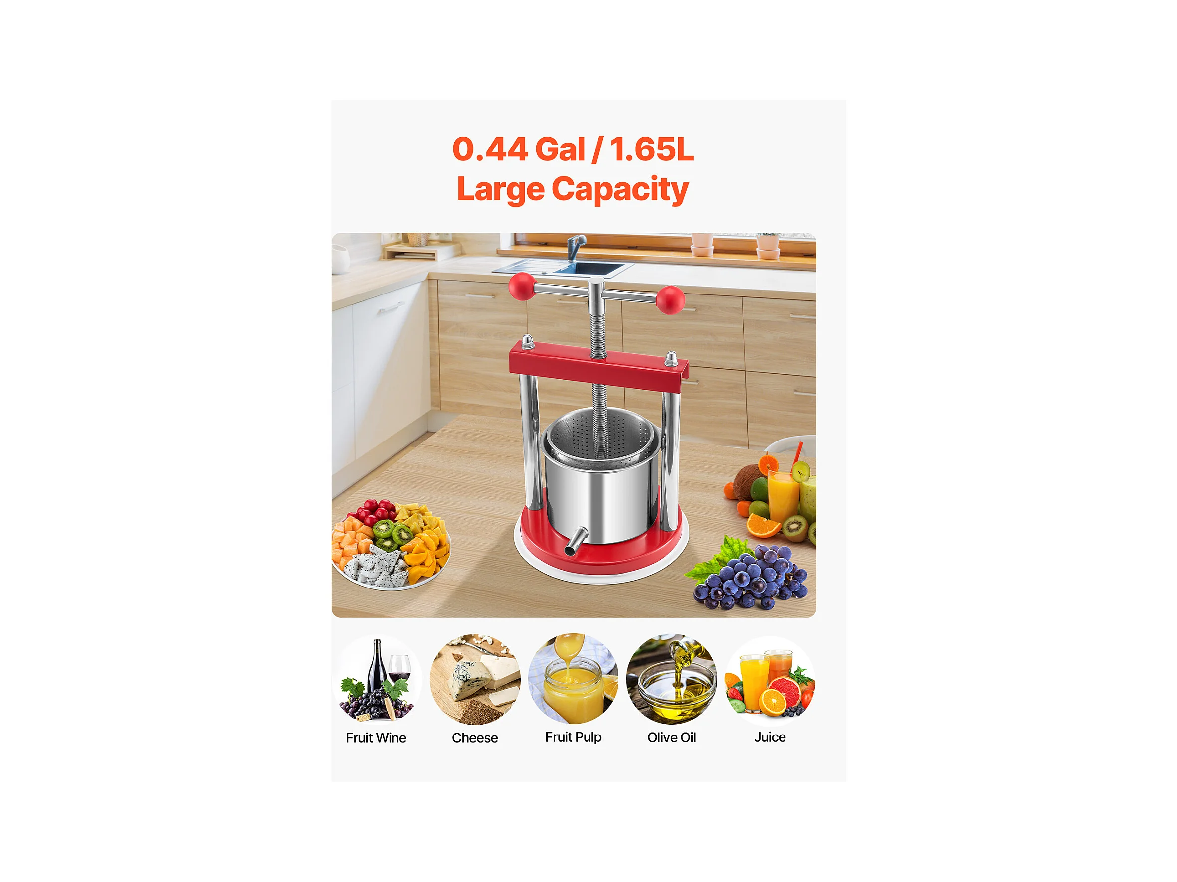 Fruitpers SucceBuy 1,5 L Roestvrijstalen Handmatige Fruitpers voor Zelfgemaakte Wijn.