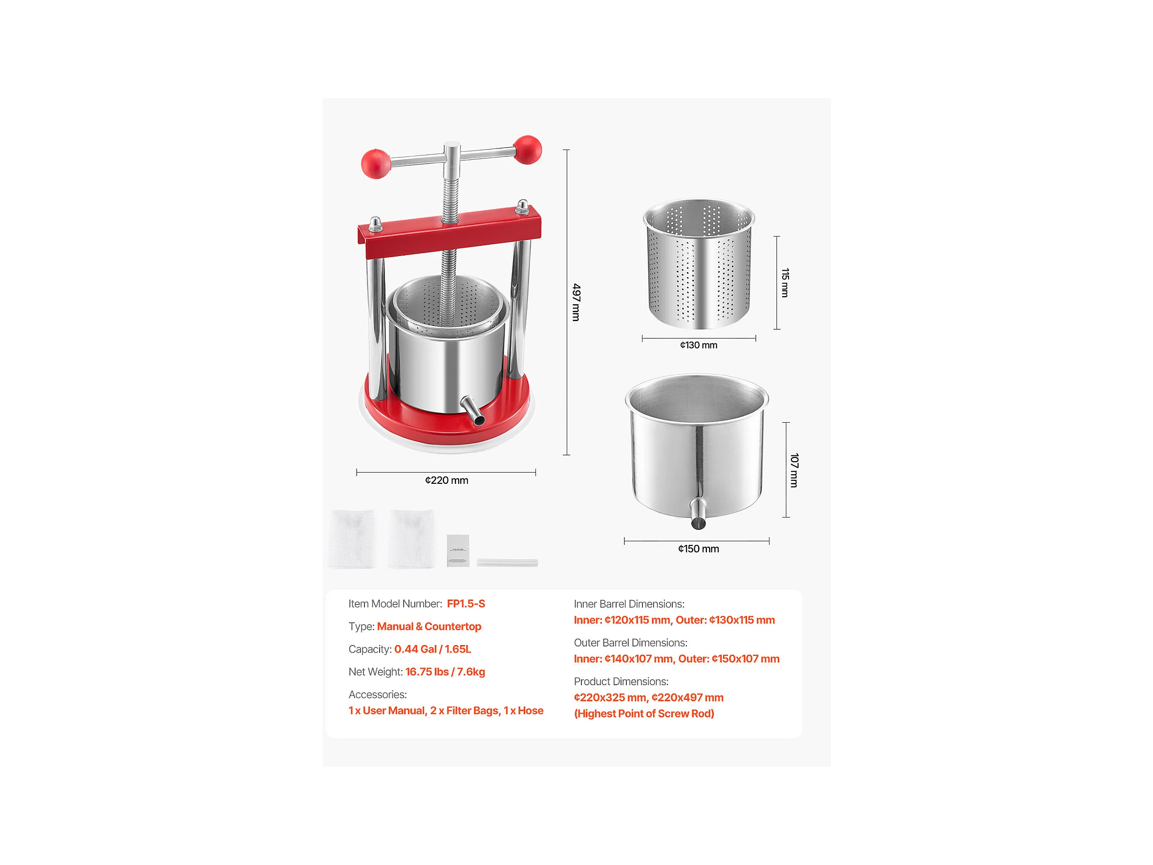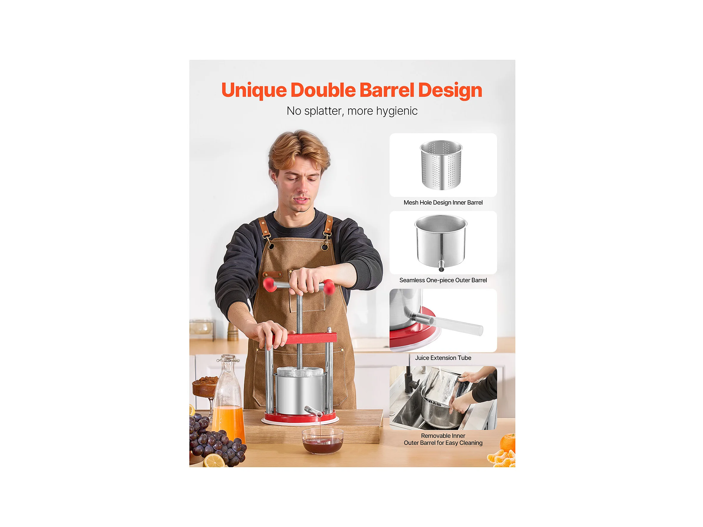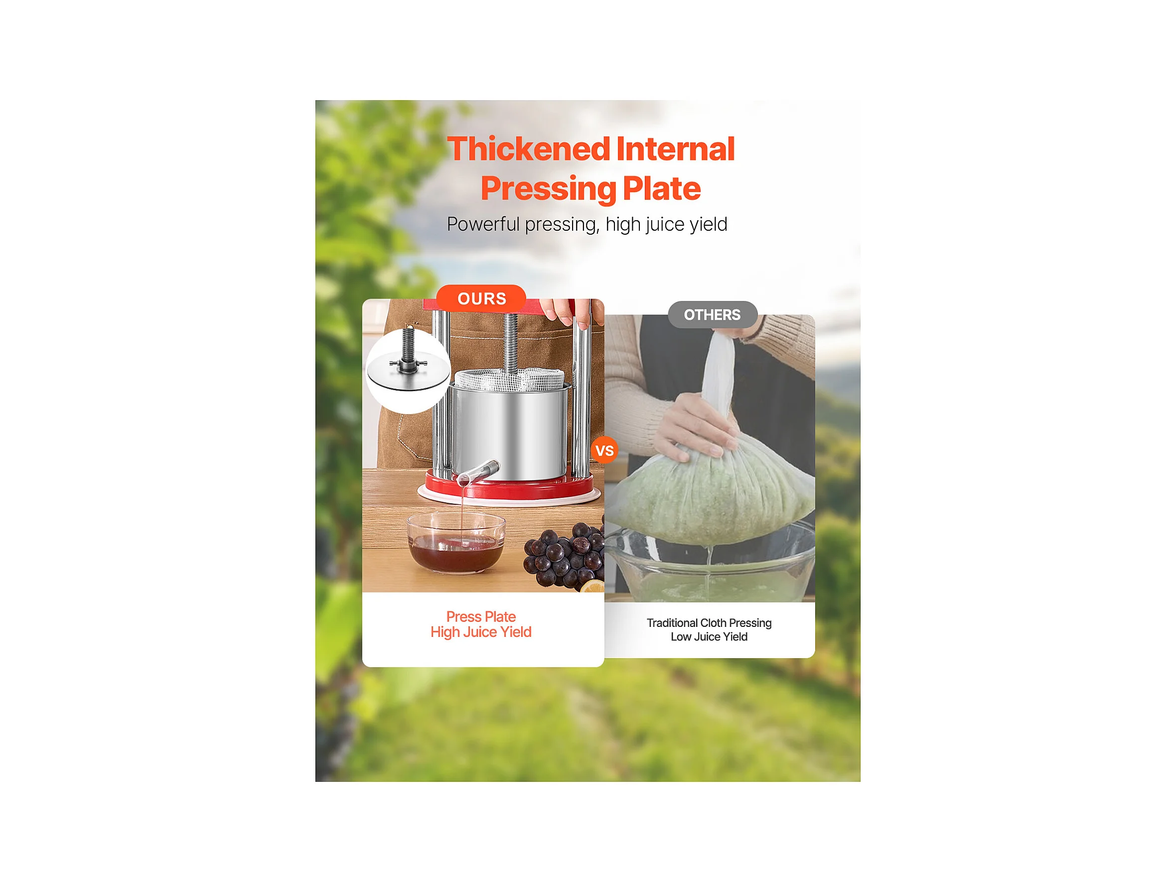 Fruitpers SucceBuy 1,5 L Roestvrijstalen Handmatige Fruitpers voor Zelfgemaakte Wijn.