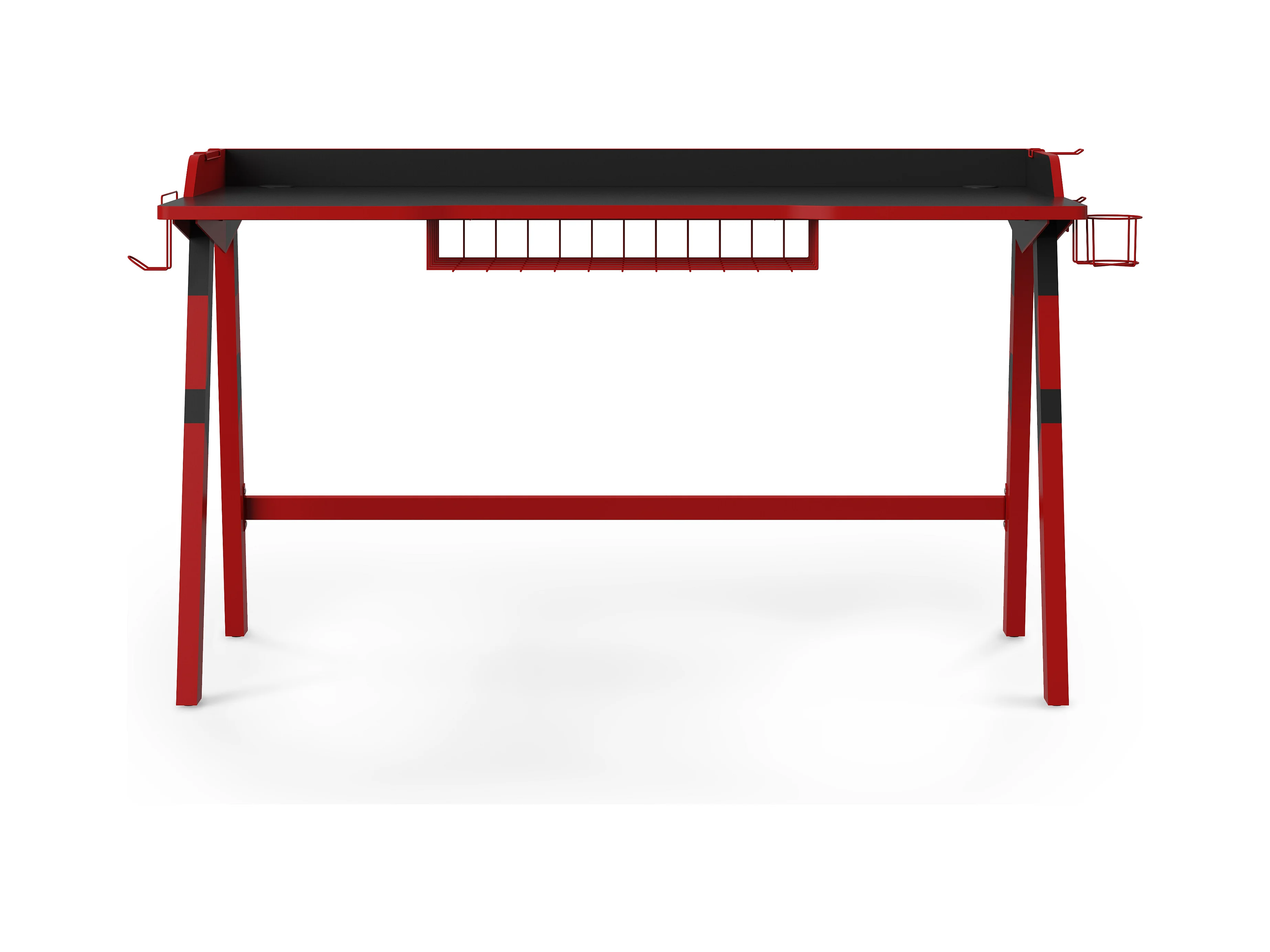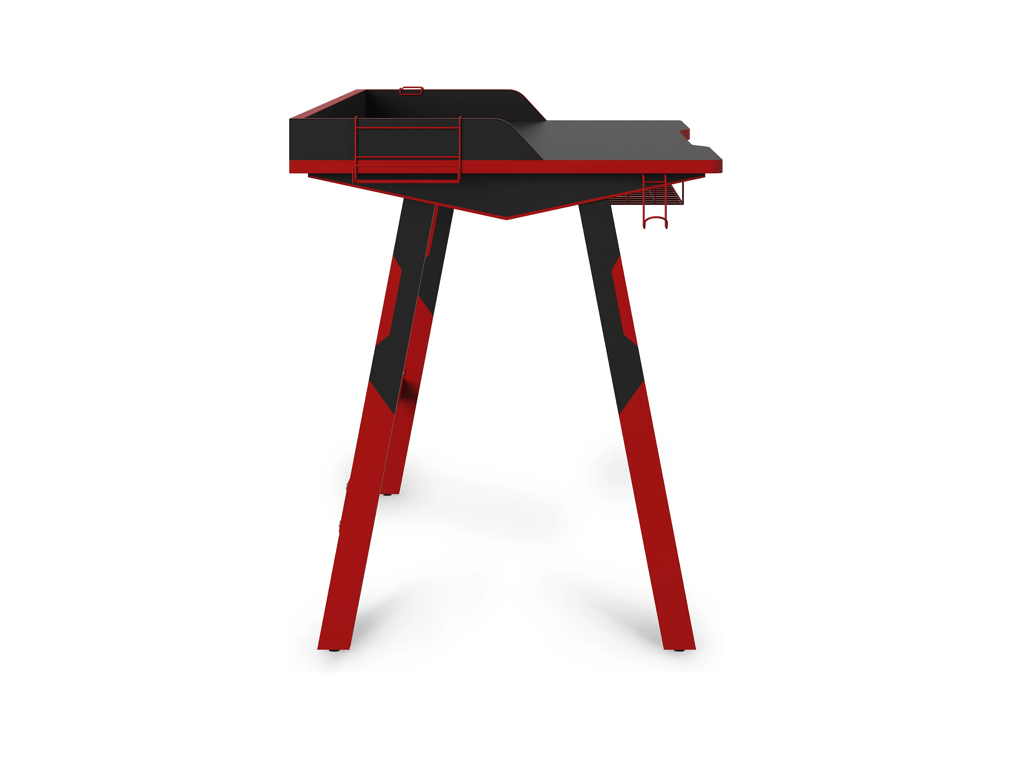 bureau gaming, gamer table avec etagère pour ecran, crochet casque, porte gobelet