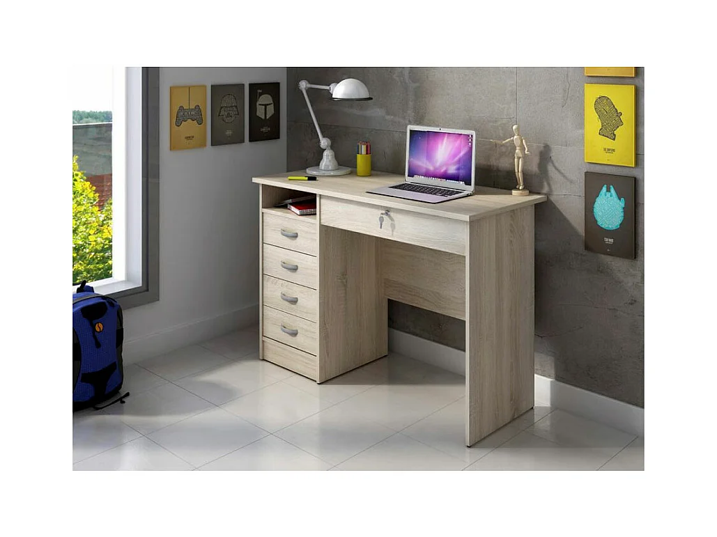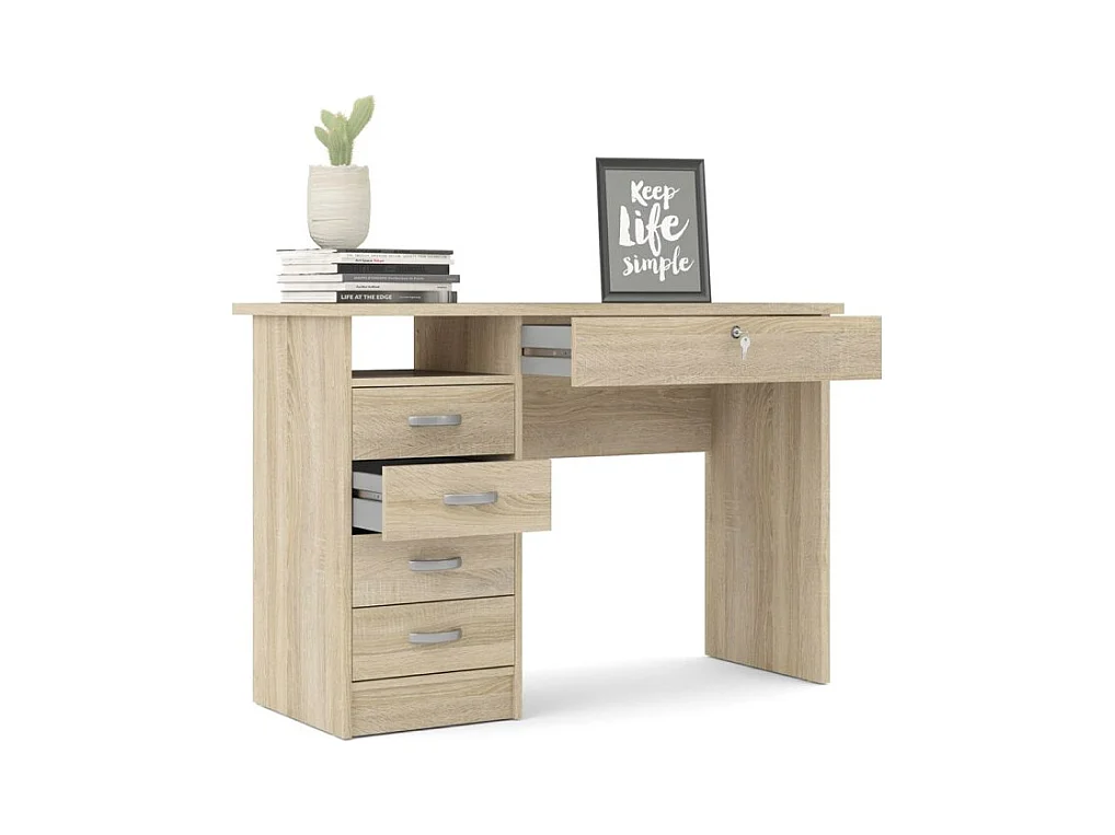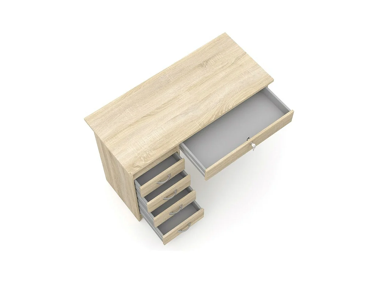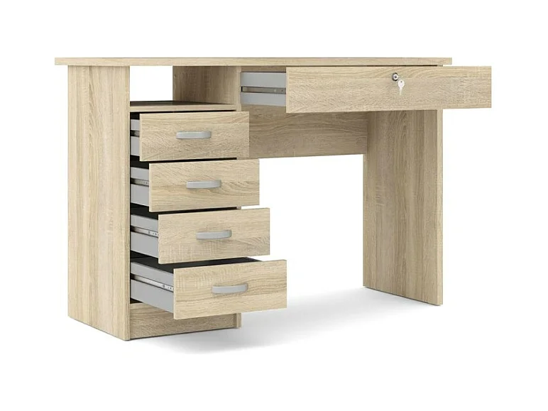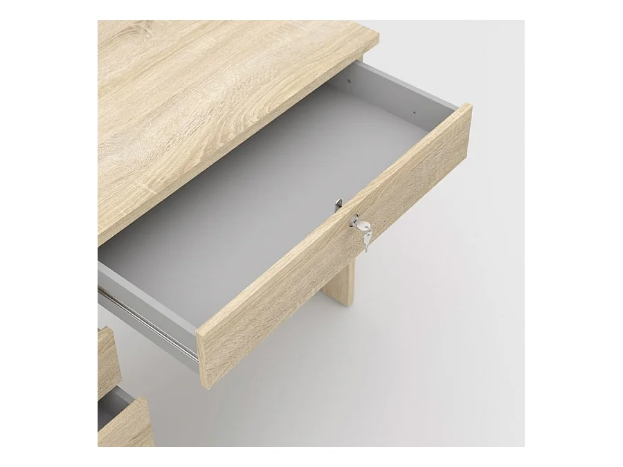 Lineair bureau met drie laden, eikenkleur, afmeting 120 x 72 x 48 cm
