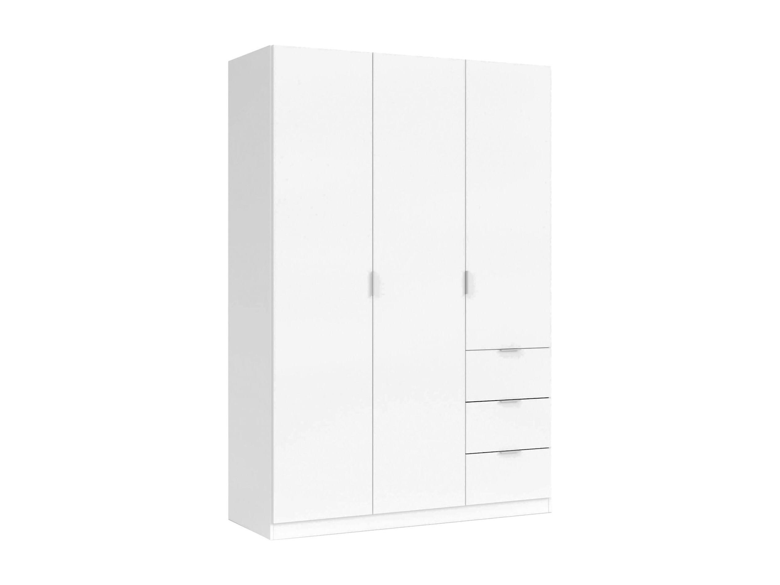 Fullerton kledingkast, slaapkamerkast met 3 deuren en 3 laden, kast met 3 planken en hangstang, 135x52h200 cm, wit