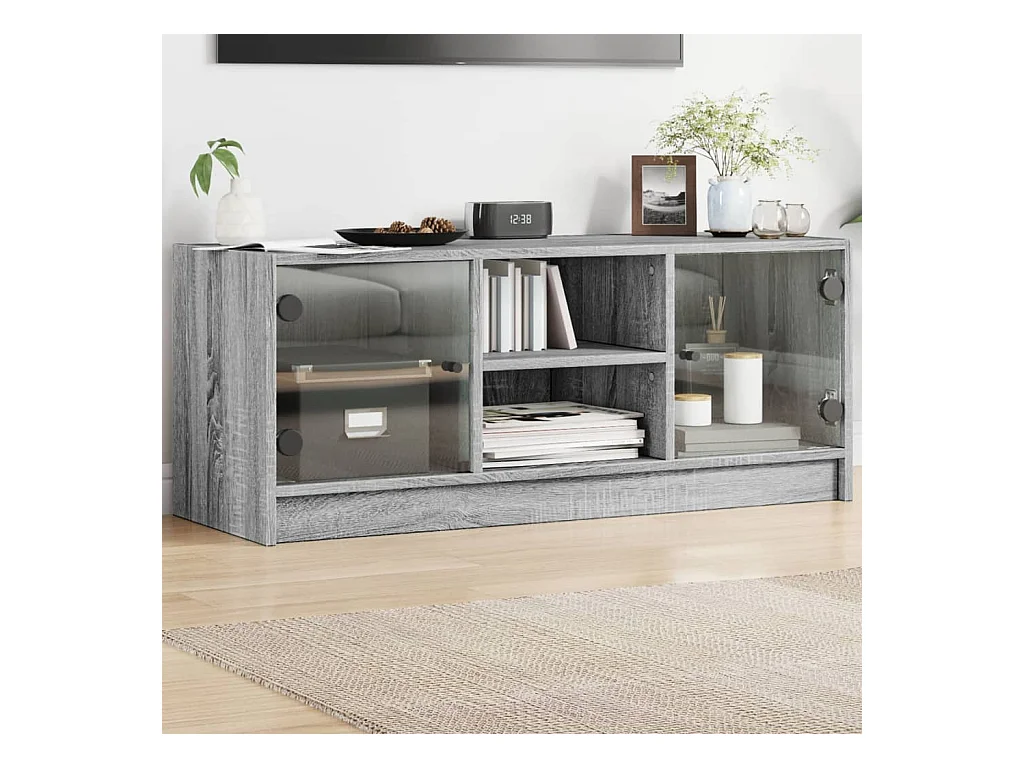 Fyrdir Tv-meubel met glazen deuren 102x37x42 cm grijs sonoma eiken
