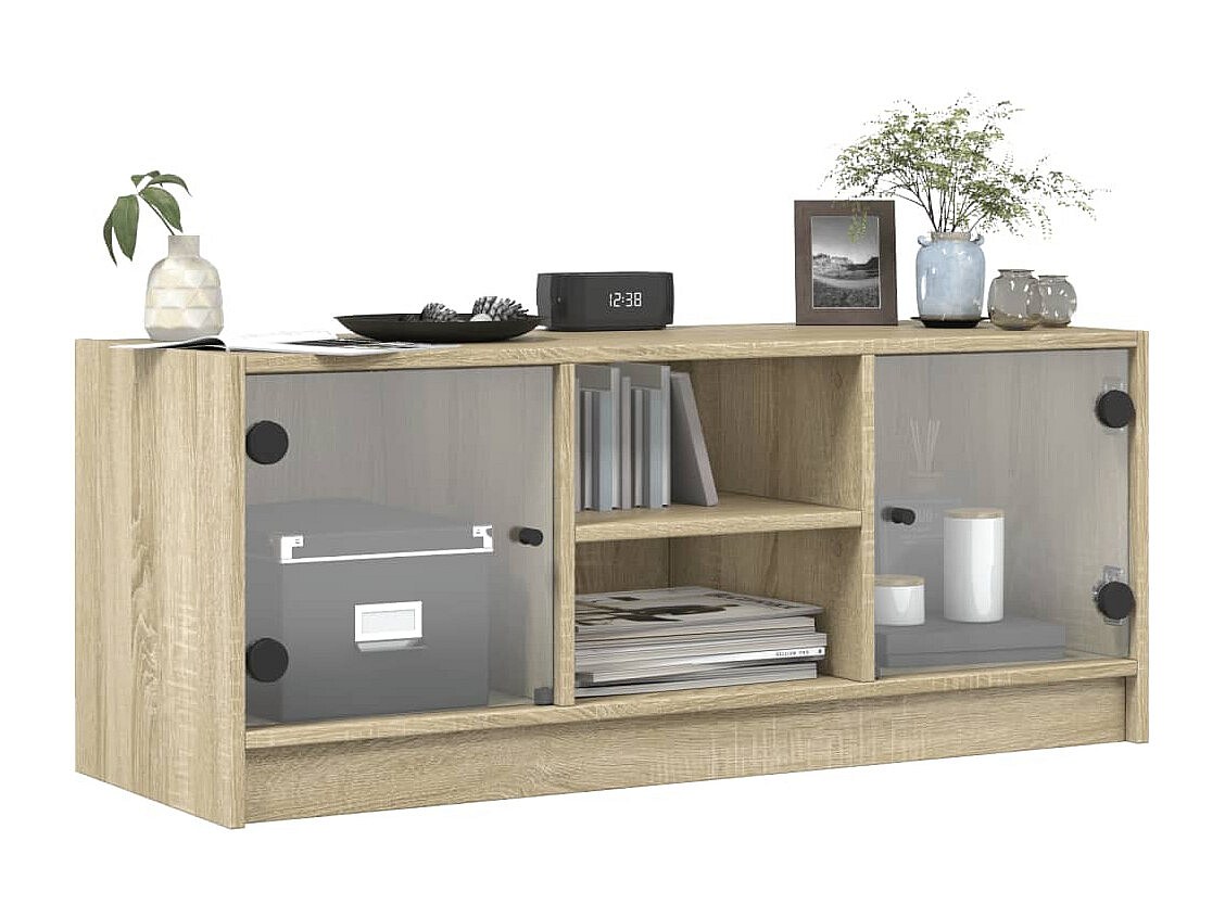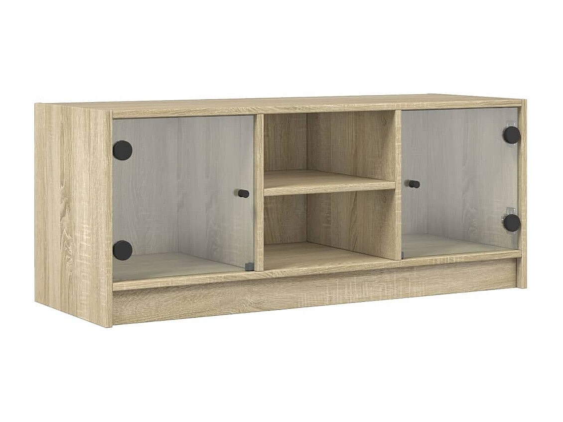 Fyrdir Tv-meubel met glazen deuren 102x37x42 cm sonoma eikenkleurig