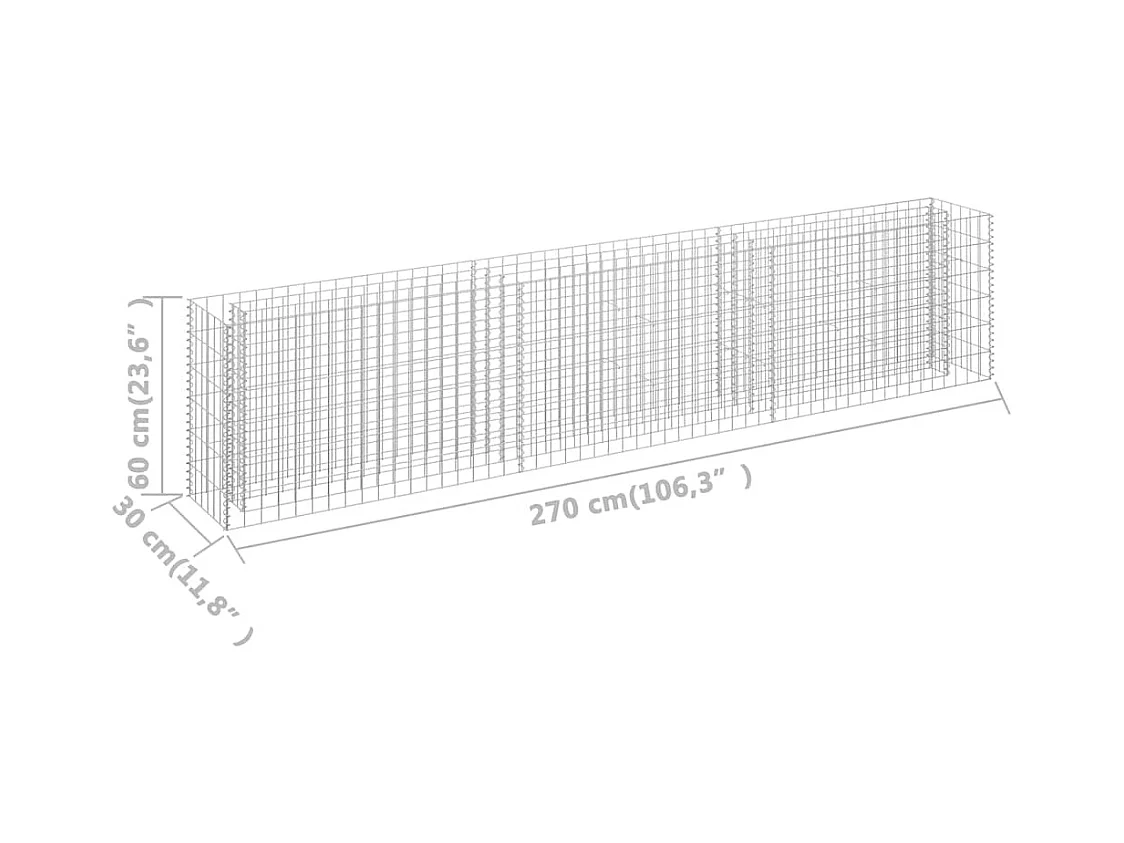 Gabion verhoogde bak Gegalvaniseerd staal 270x30x60 cm
