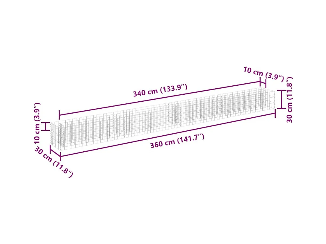 Gabion verhoogde bak Gegalvaniseerd staal 360x30x30 cm