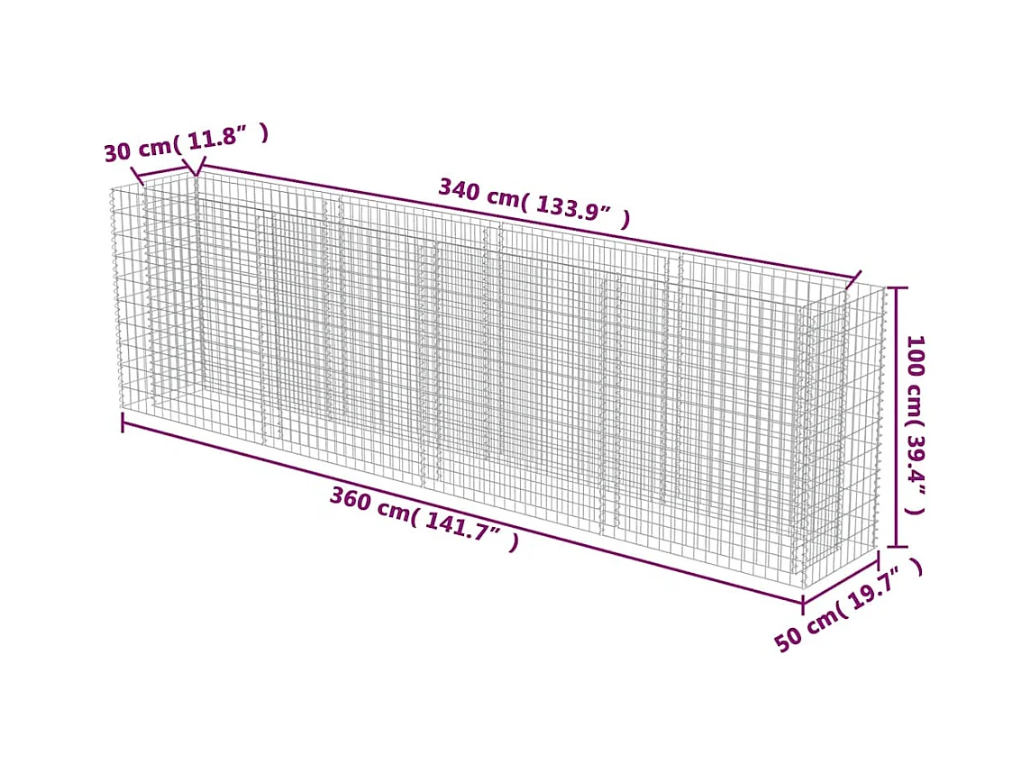 Gabion verhoogde bak Gegalvaniseerd staal 360x50x100 cm