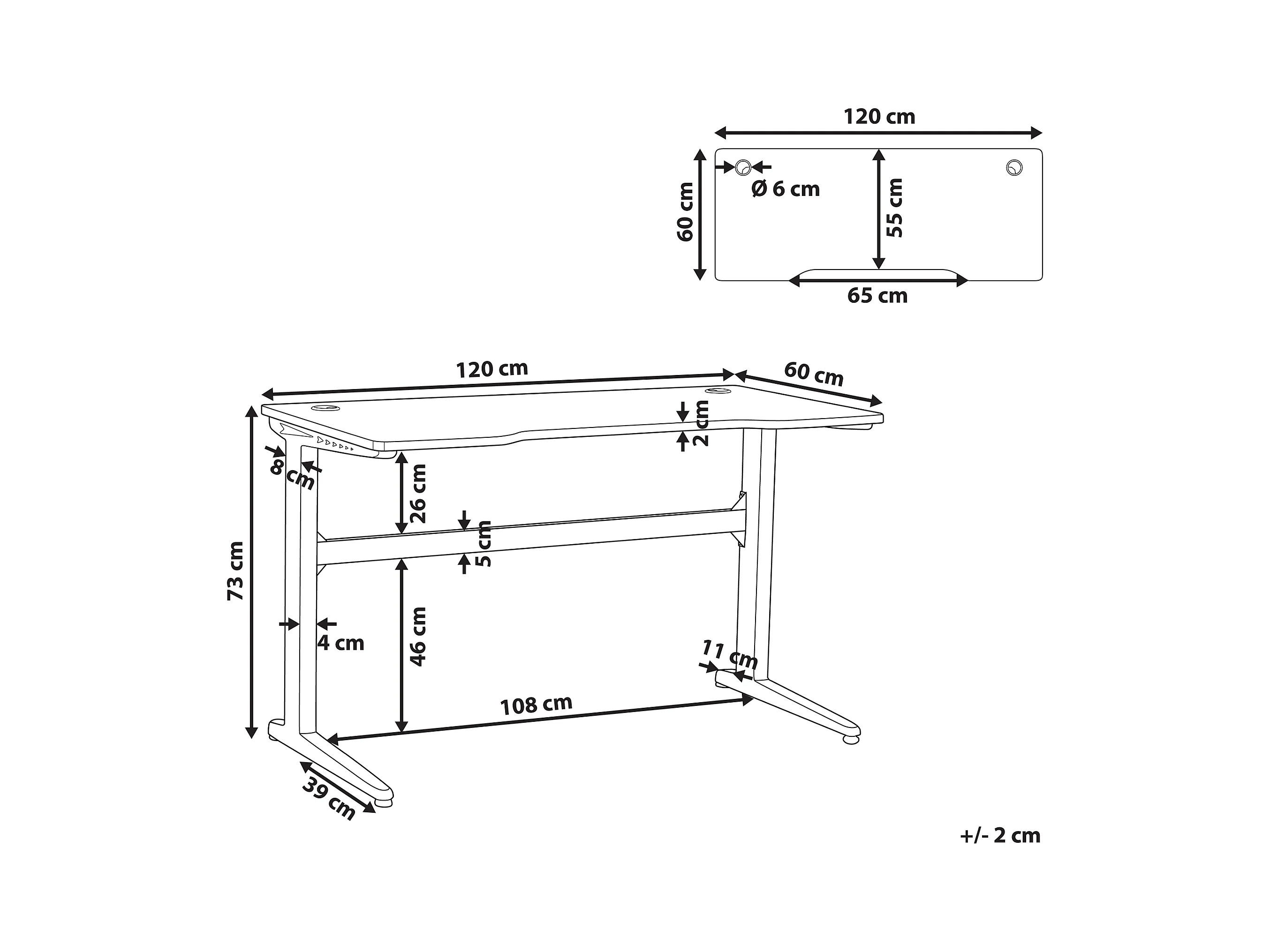 Game bureau DORAN Zwart 120 cm 60 cm RGB LED