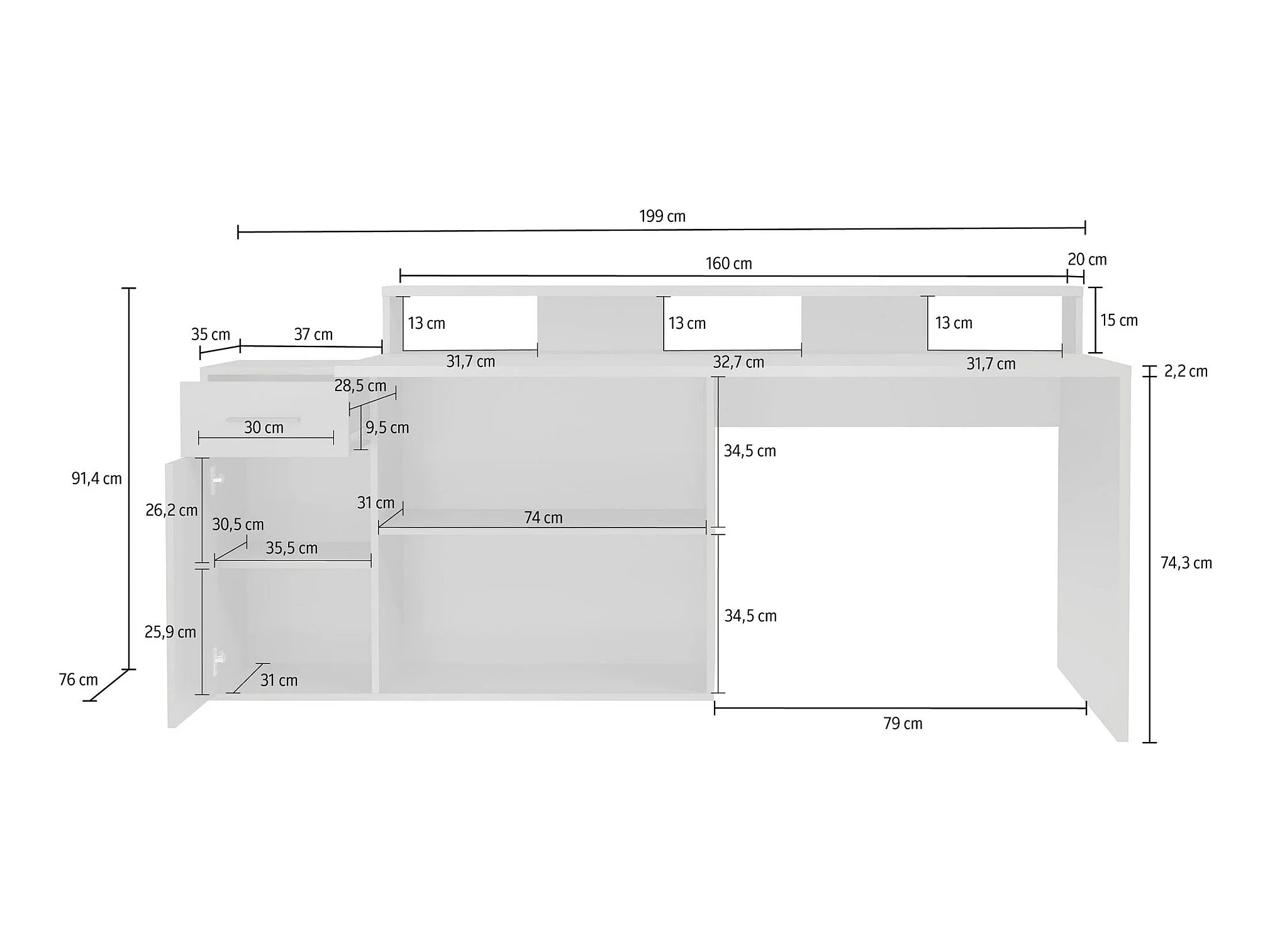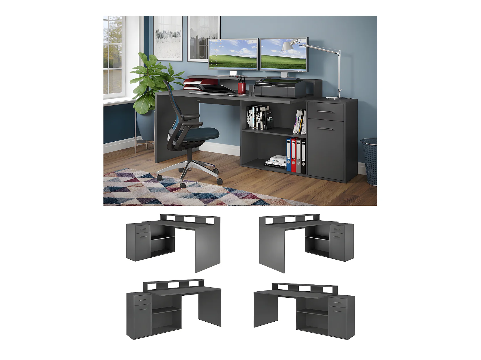 GamerBüro bureau gamer 1 deur, 1 lade, 2 open vakken antraciet mat.