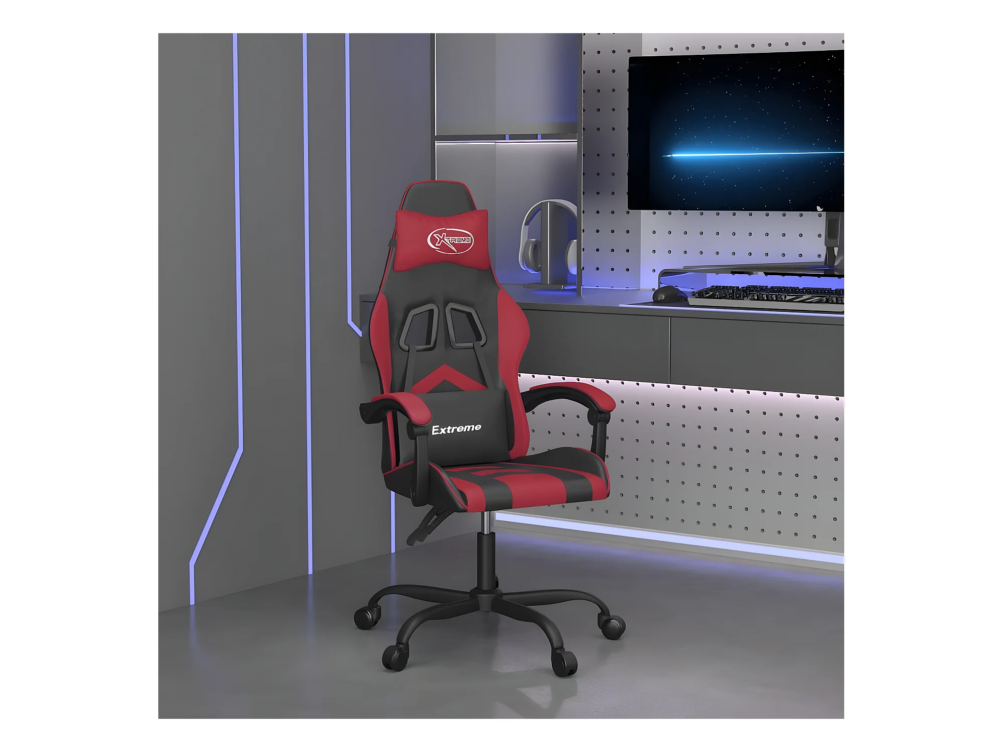 Gamestoel draaibaar kunstleer zwart en wijnrood