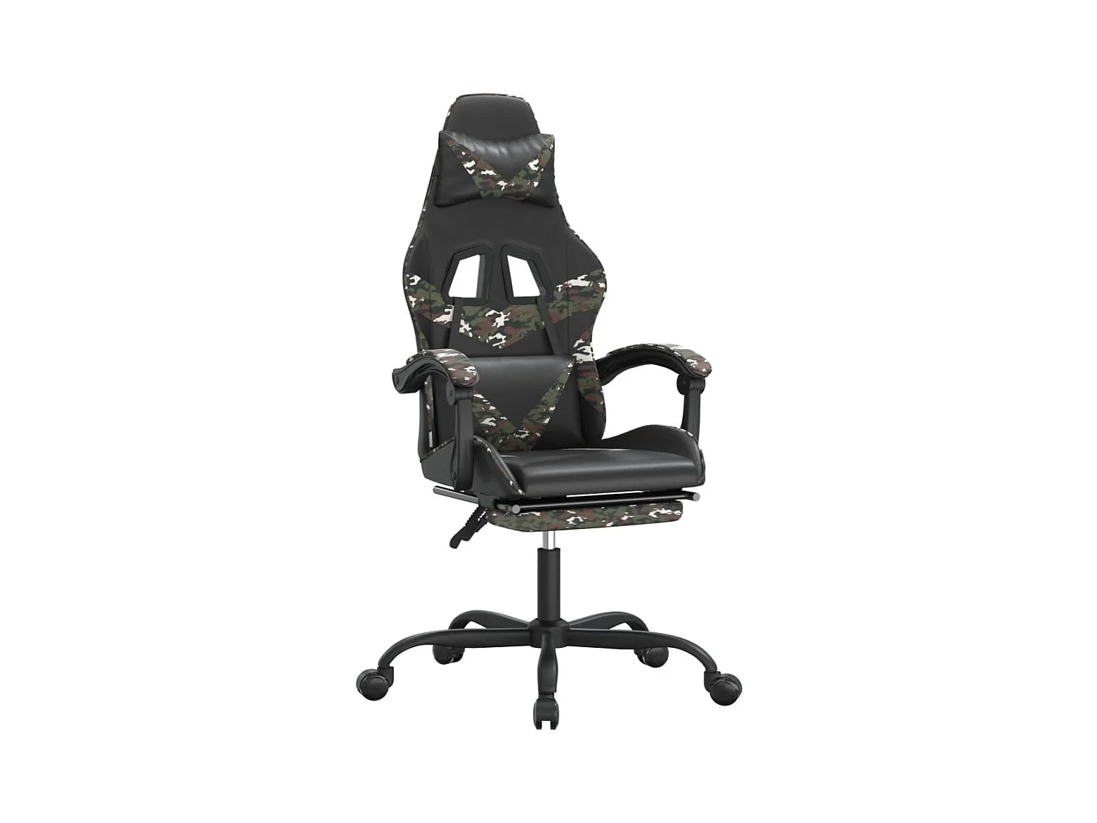 gamestoel draaibaar met voetensteun kunstleer zwart&camouflage