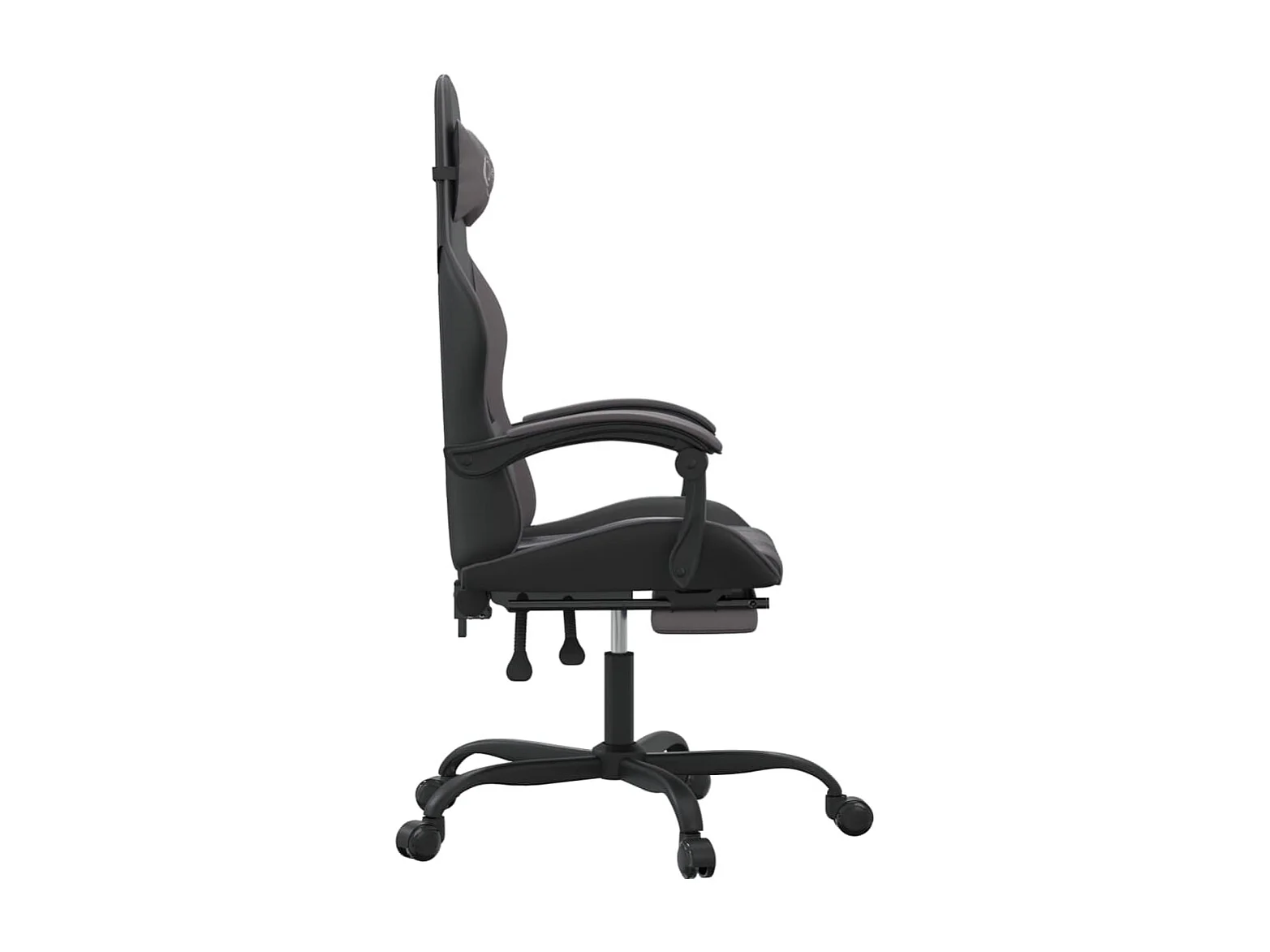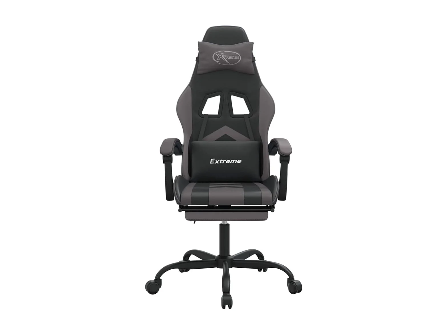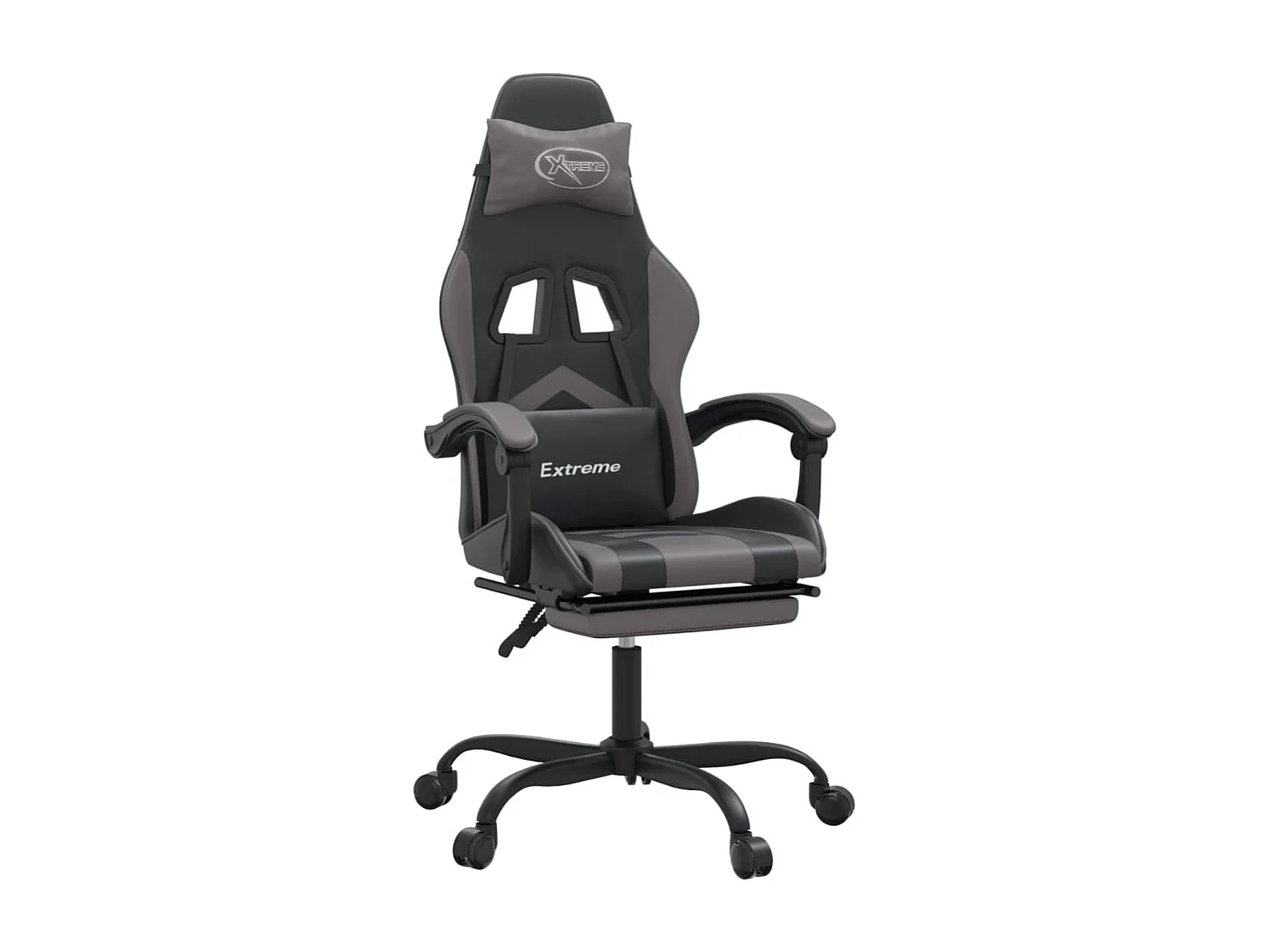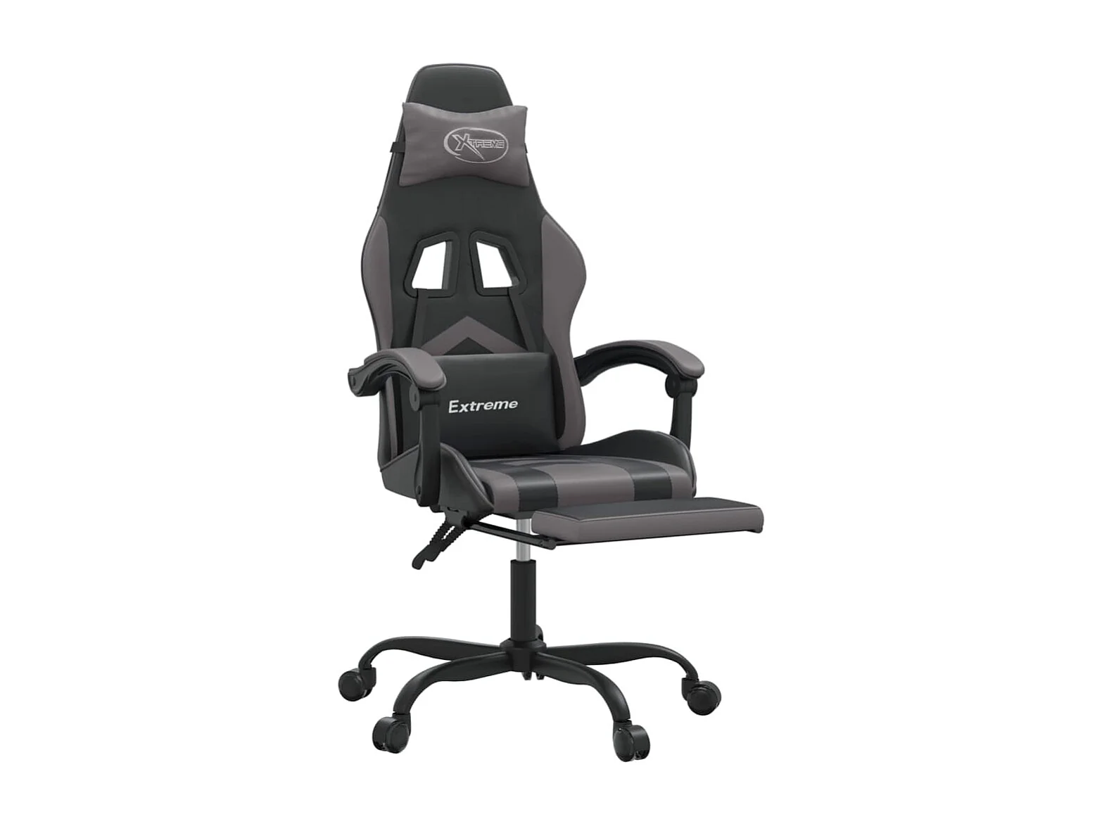Gamestoel draaibaar met voetensteun kunstleer zwart en grijs