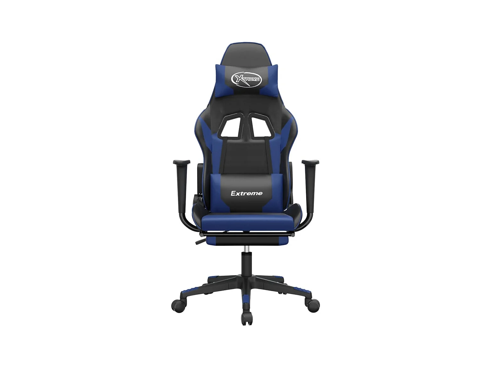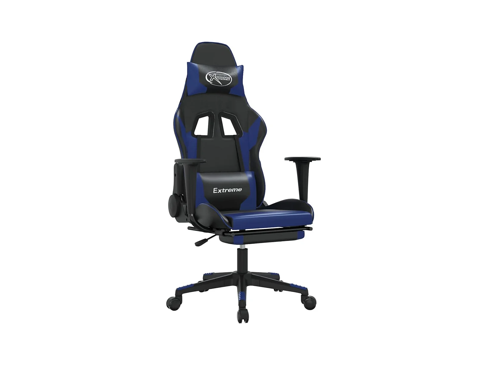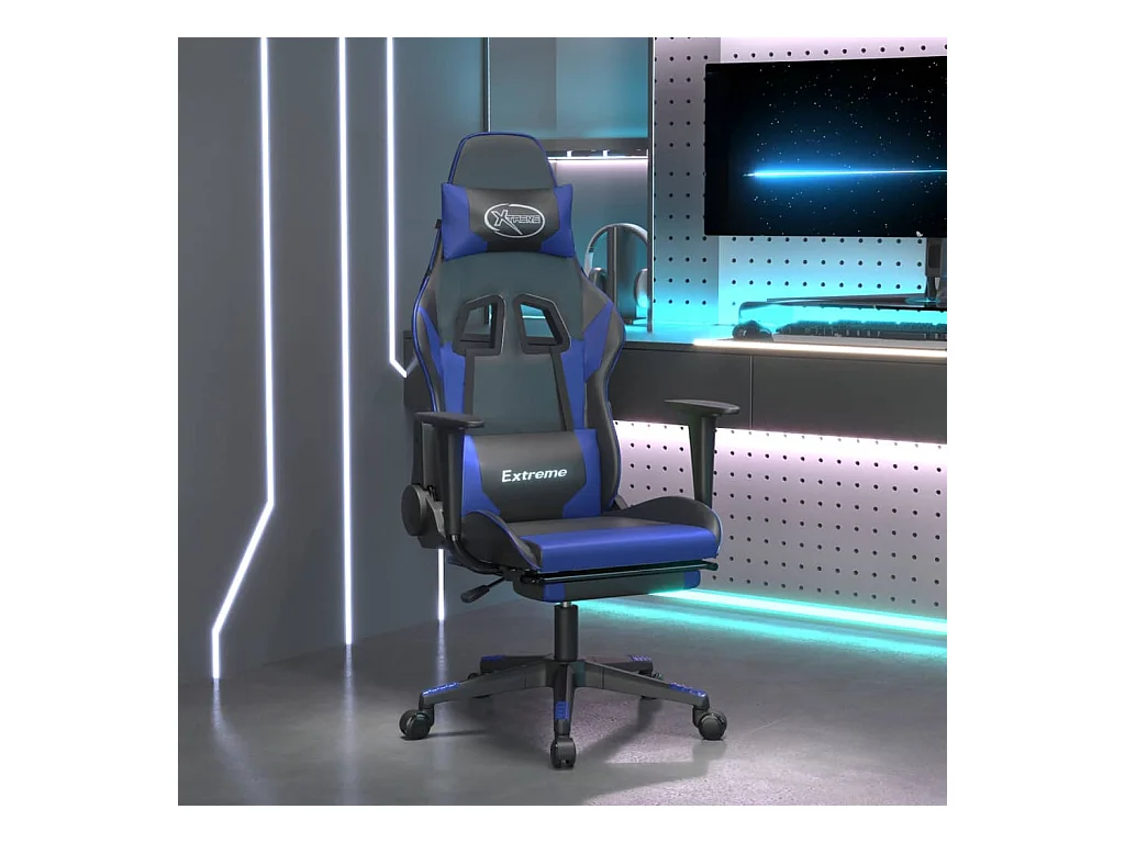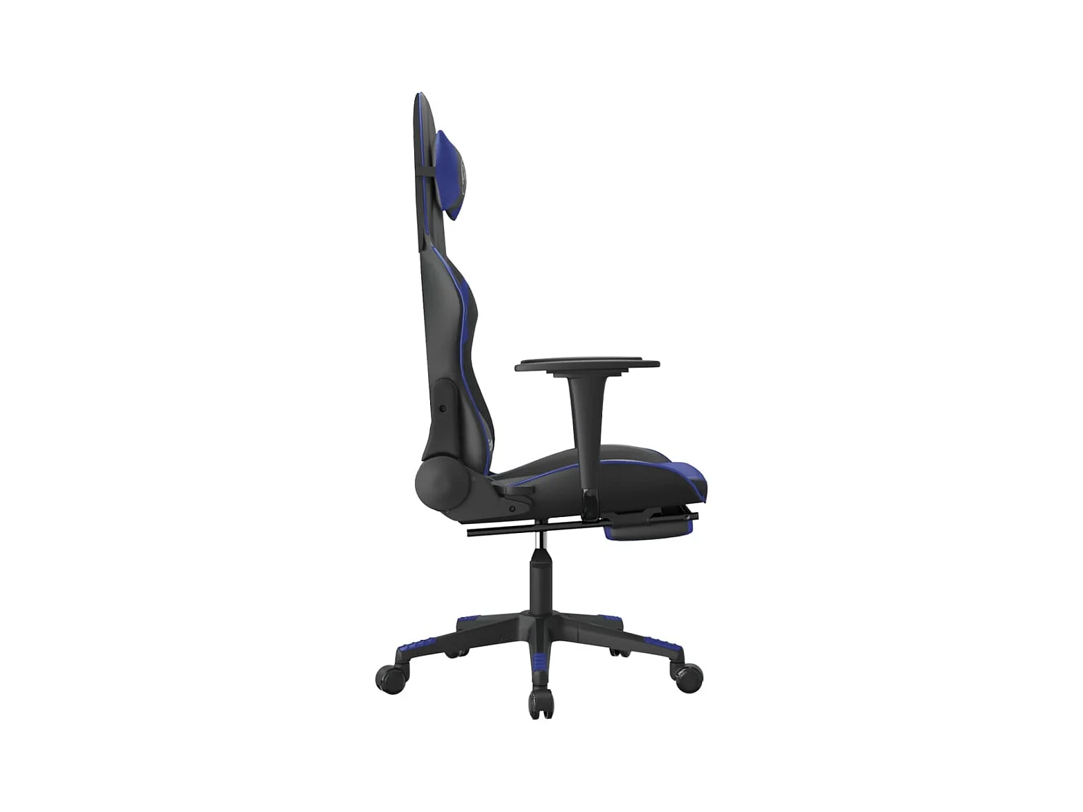 Gamestoel met voetensteun kunstleer zwart en blauw