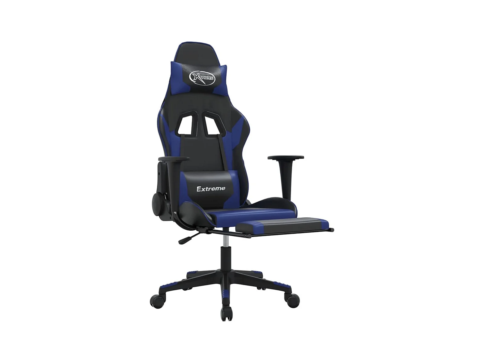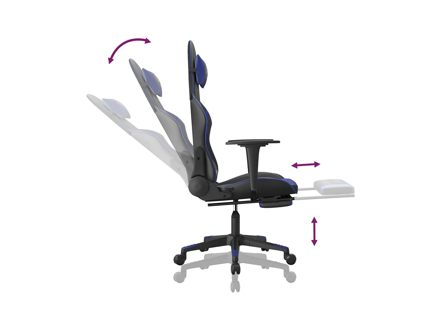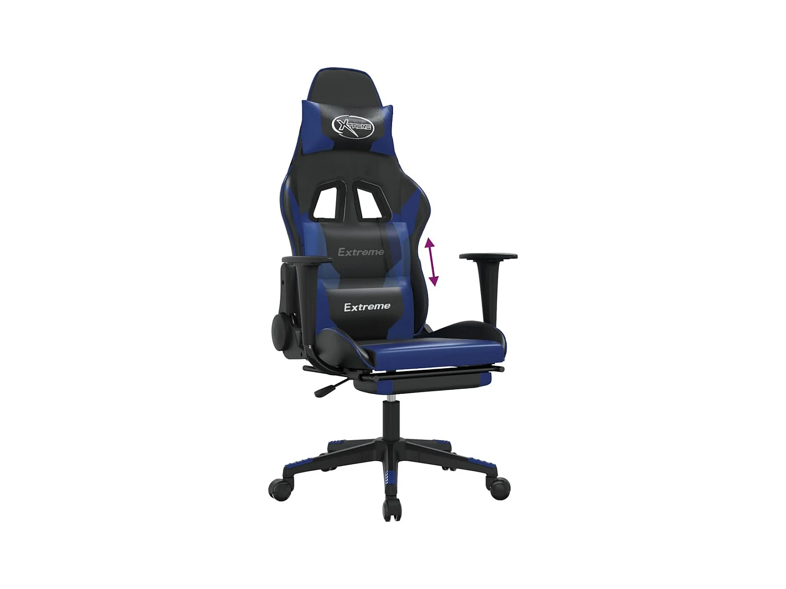 Gamestoel met voetensteun kunstleer zwart en blauw