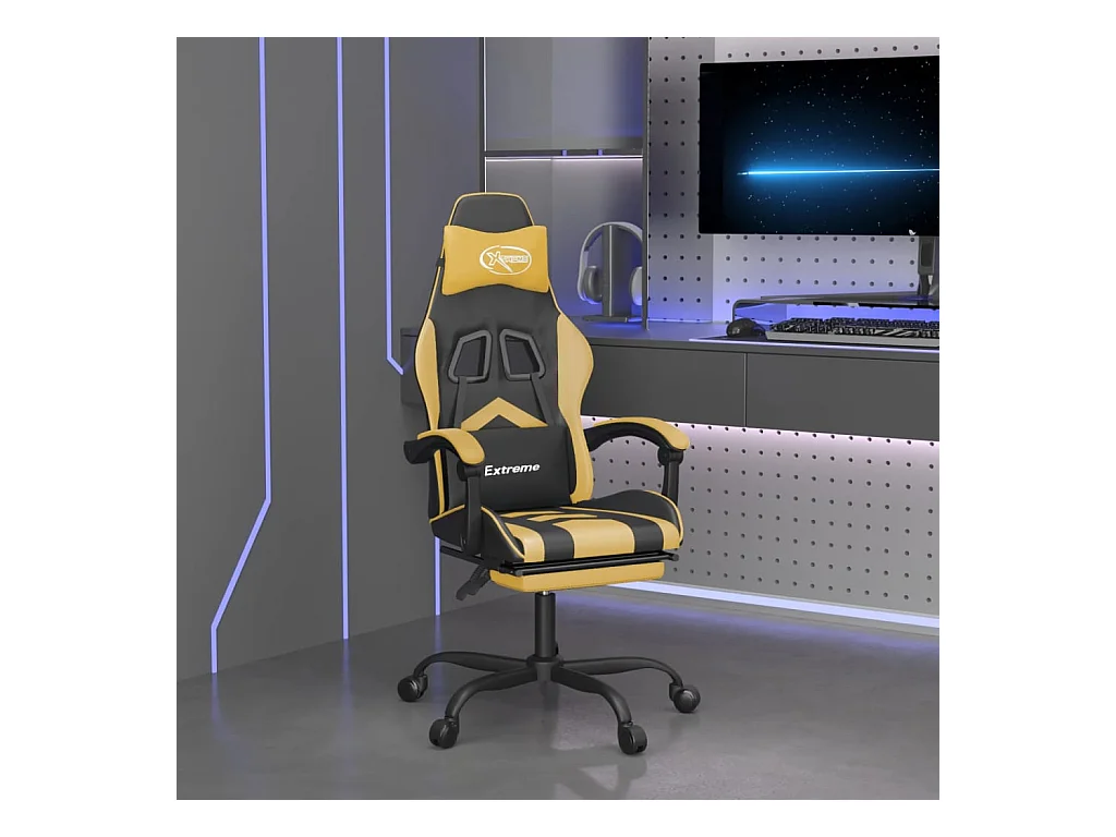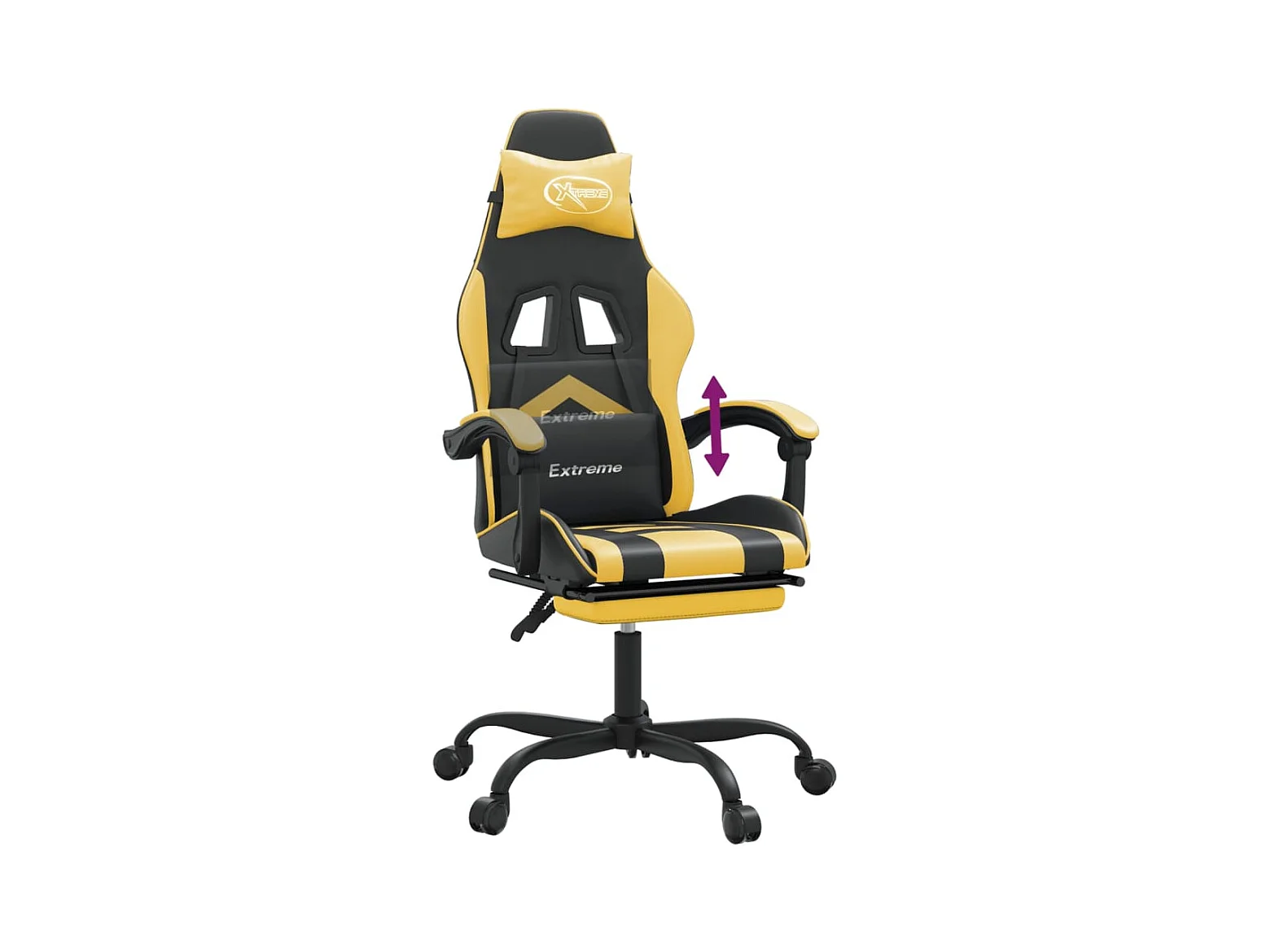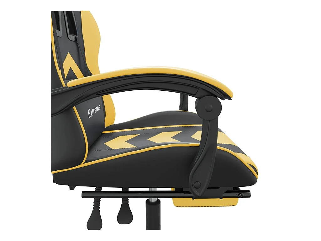 Gamestoel met voetensteun kunstleer zwart en goudkleurig