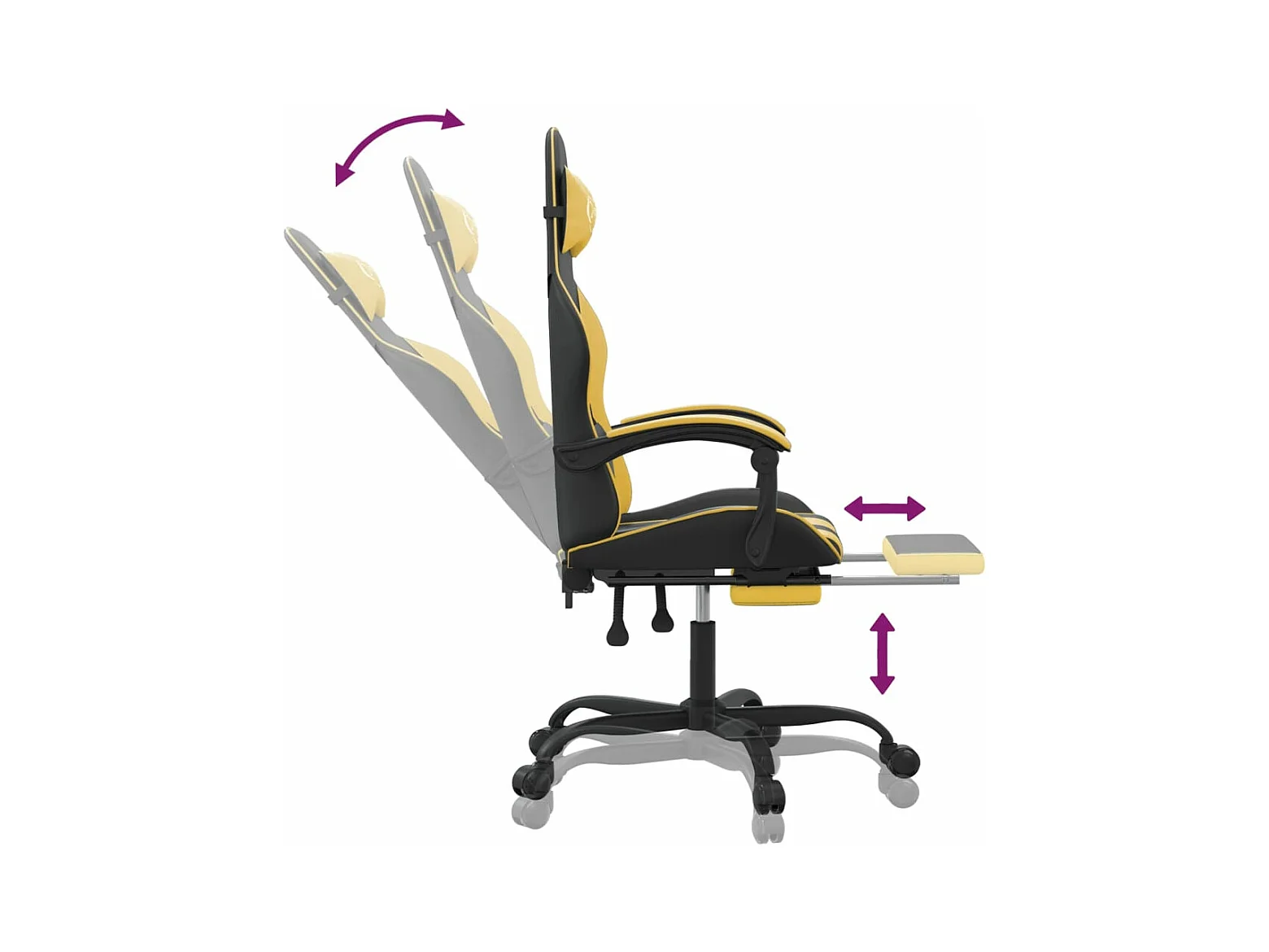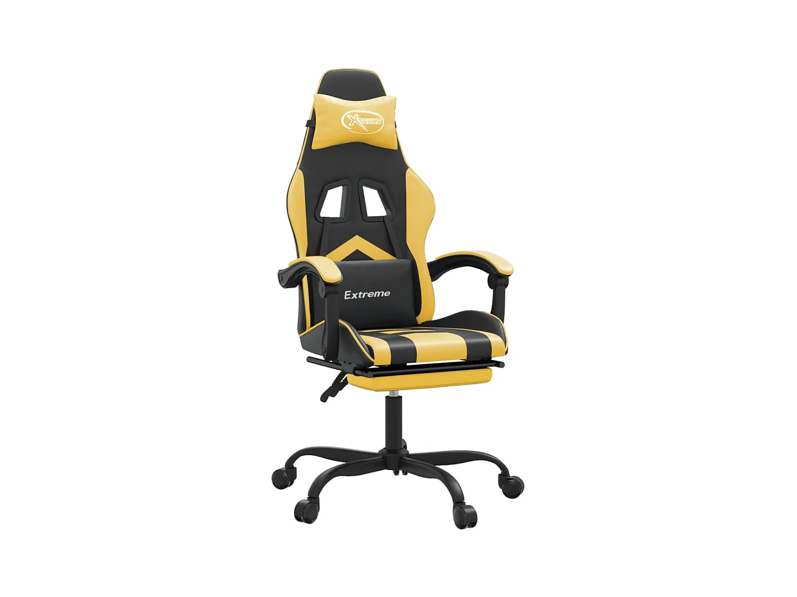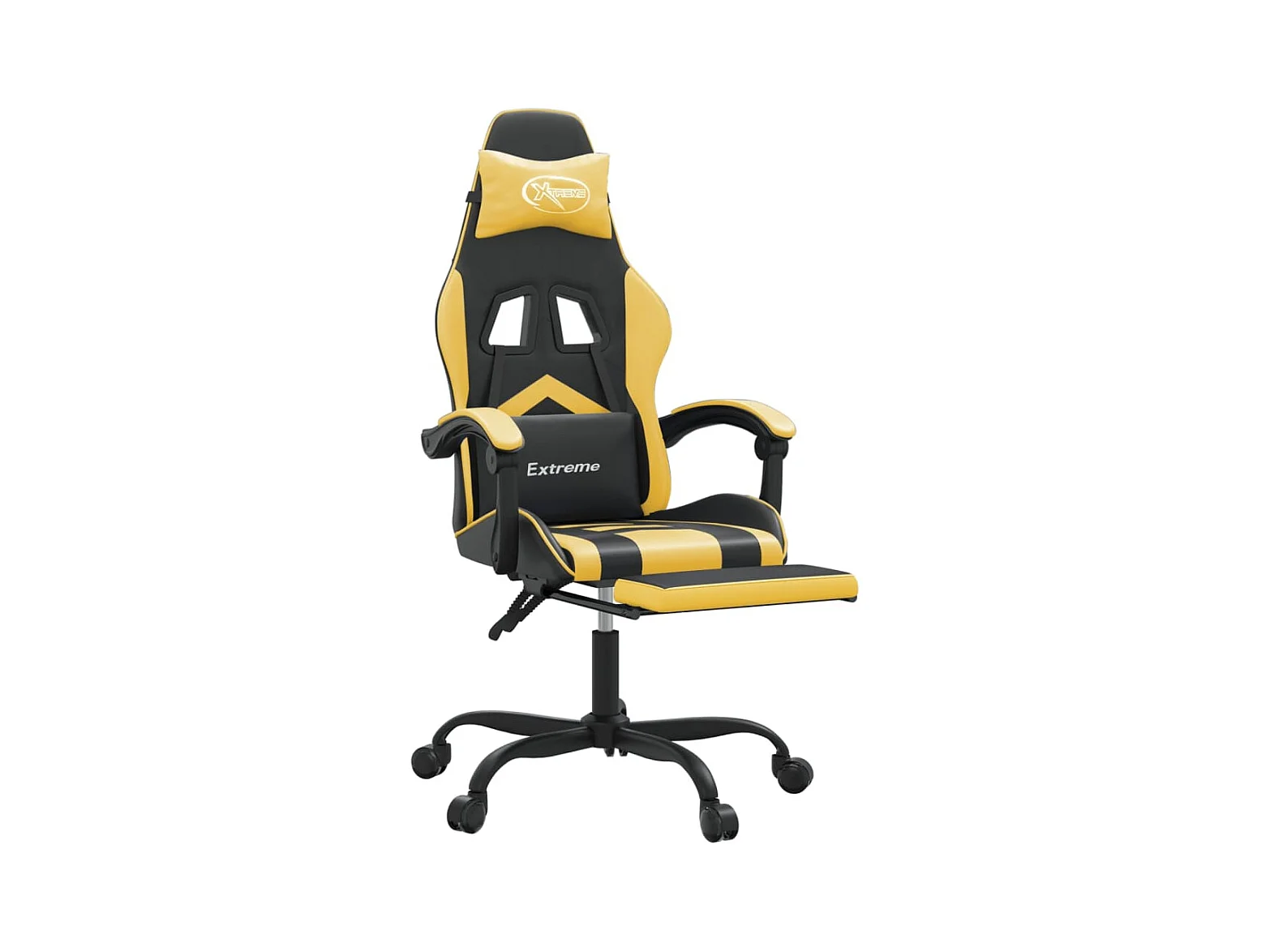 Gamestoel met voetensteun kunstleer zwart en goudkleurig
