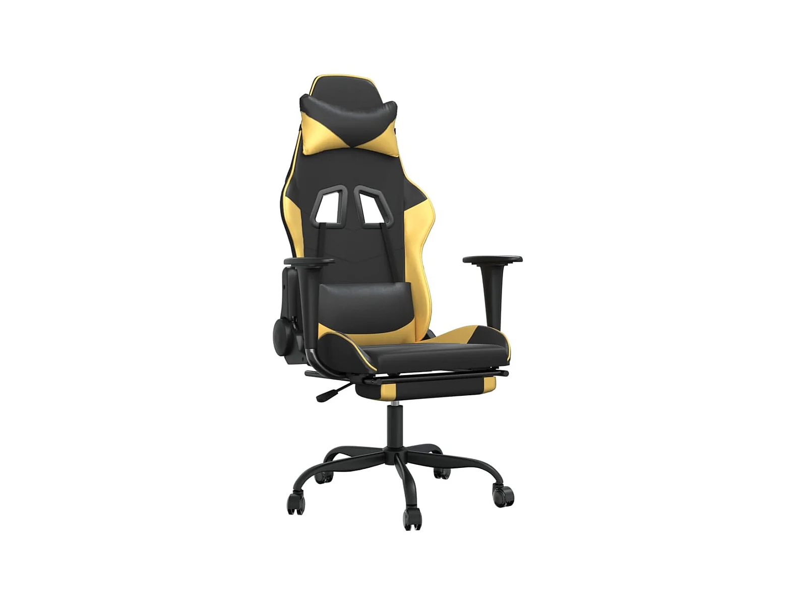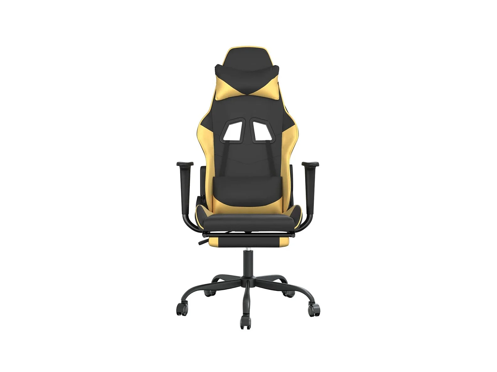 Gamestoel met voetensteun kunstleer zwart en goudkleurig NL603080