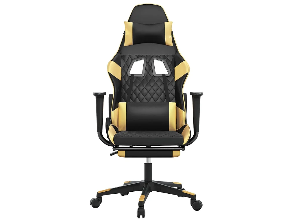 Gamestoel met voetensteun kunstleer zwart en goudkleurig NL271932