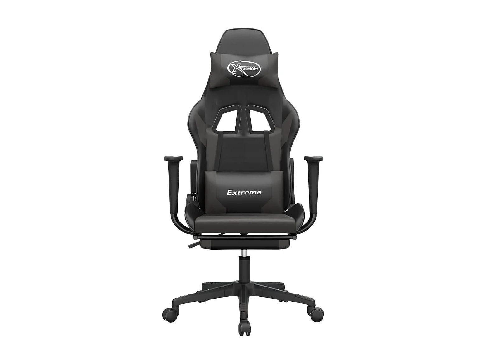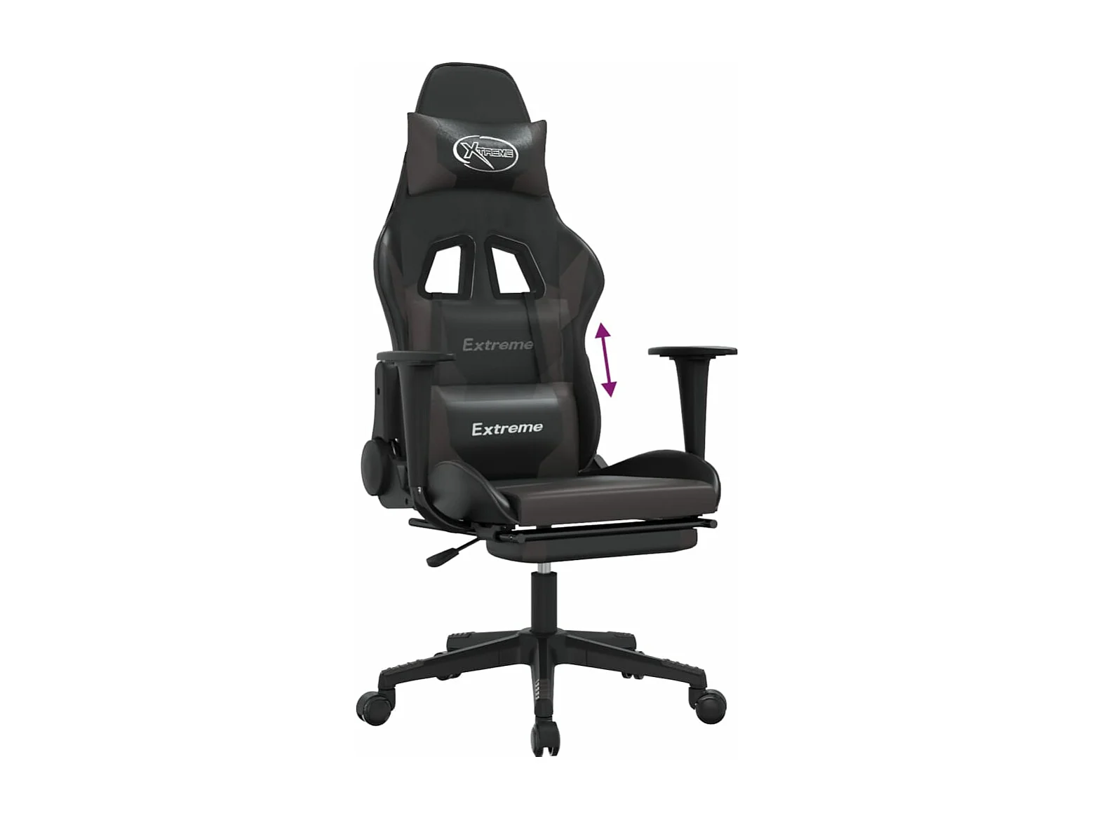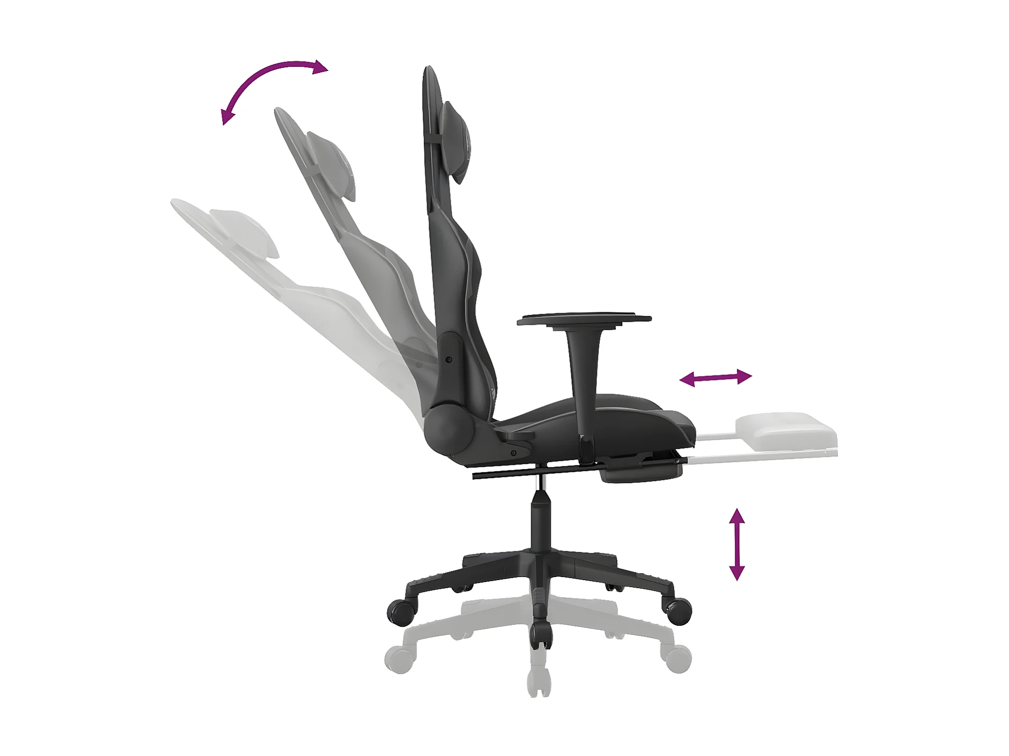Gamestoel met voetensteun kunstleer zwart en grijs
