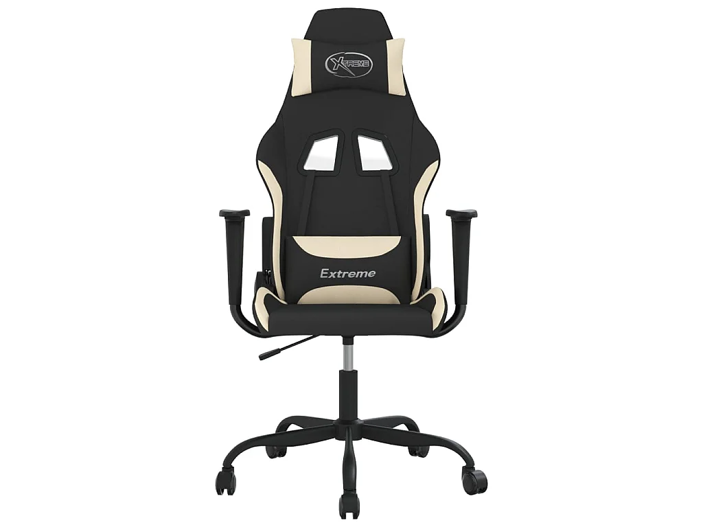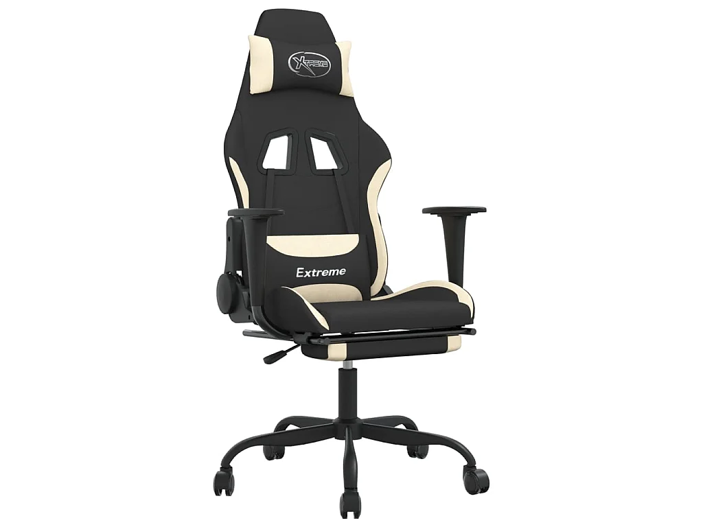 Gamestoel met voetensteun stof zwart en crème NL102314
