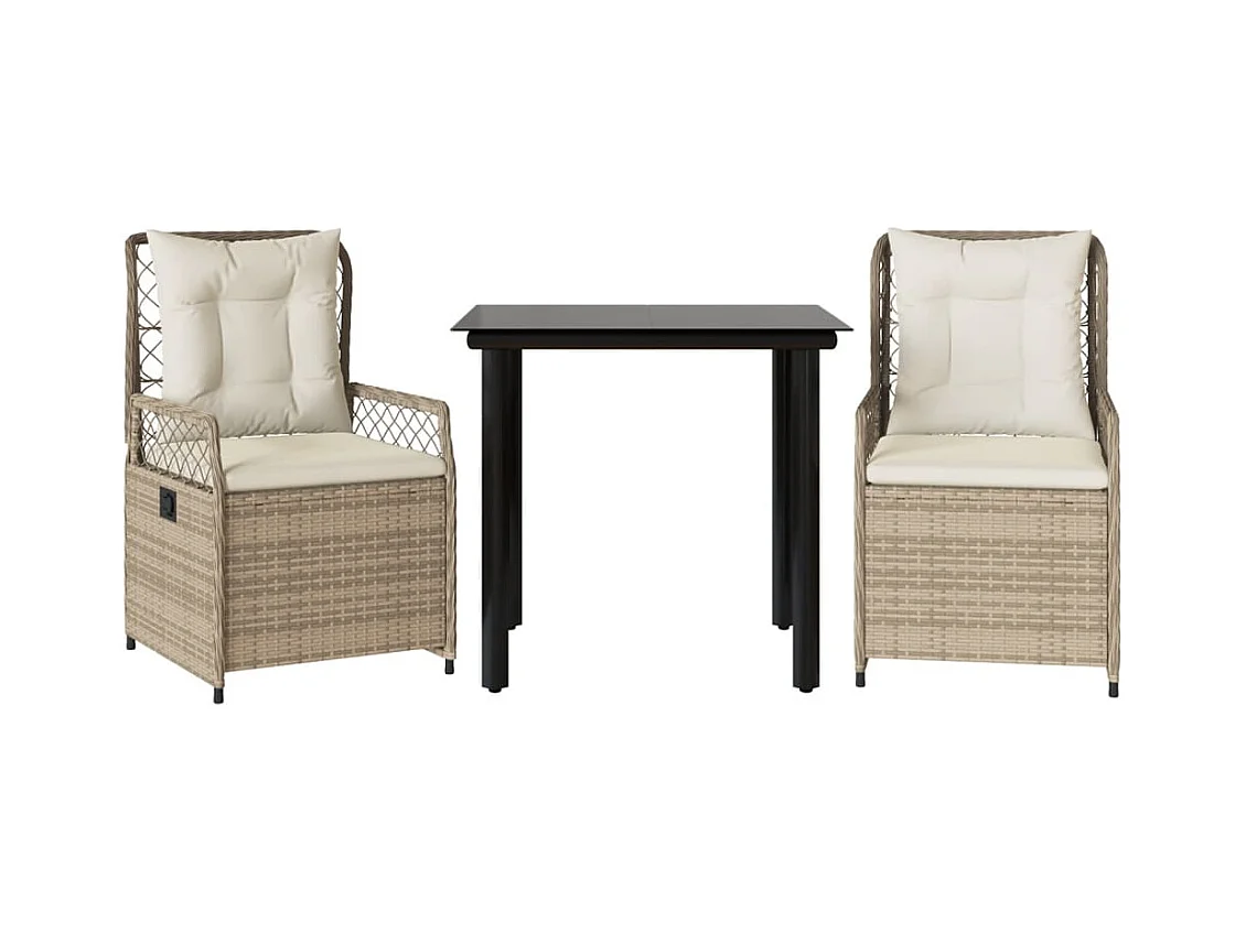 Saffet 3-delige Tuinset met kussens poly rattan gemengd beige