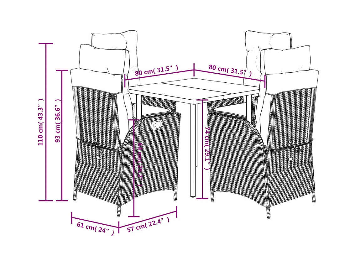 Warner Robins 5-delige Tuinset met kussens poly rattan gemengd beige