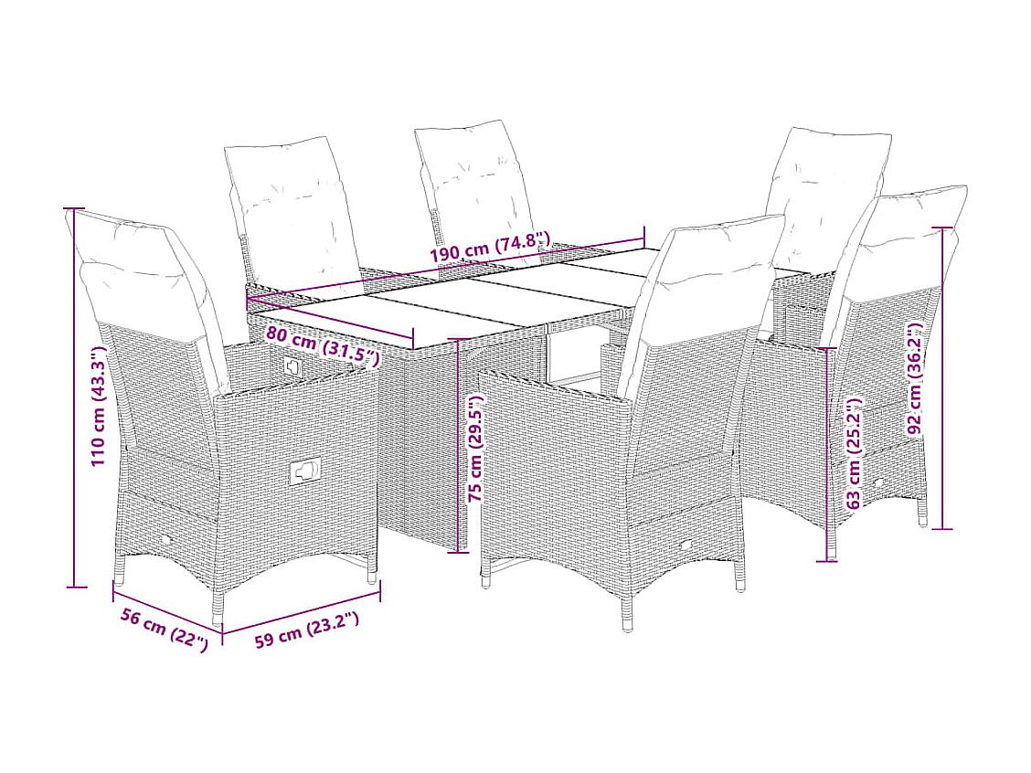 Great Bend 7-delige Tuinset met kussens poly rattan zwart