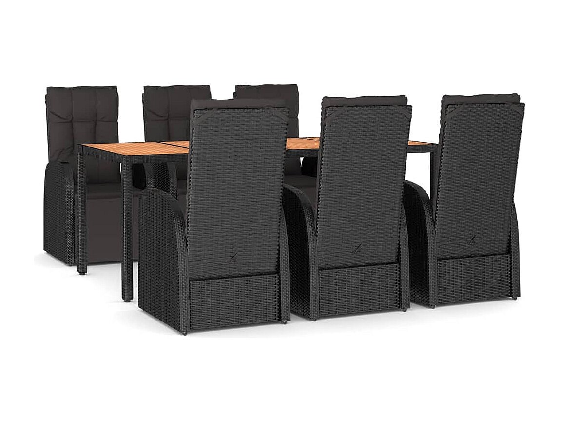 Garden Furniture - 7-delige Tuinset poly rattan en massief acaciahout zwart