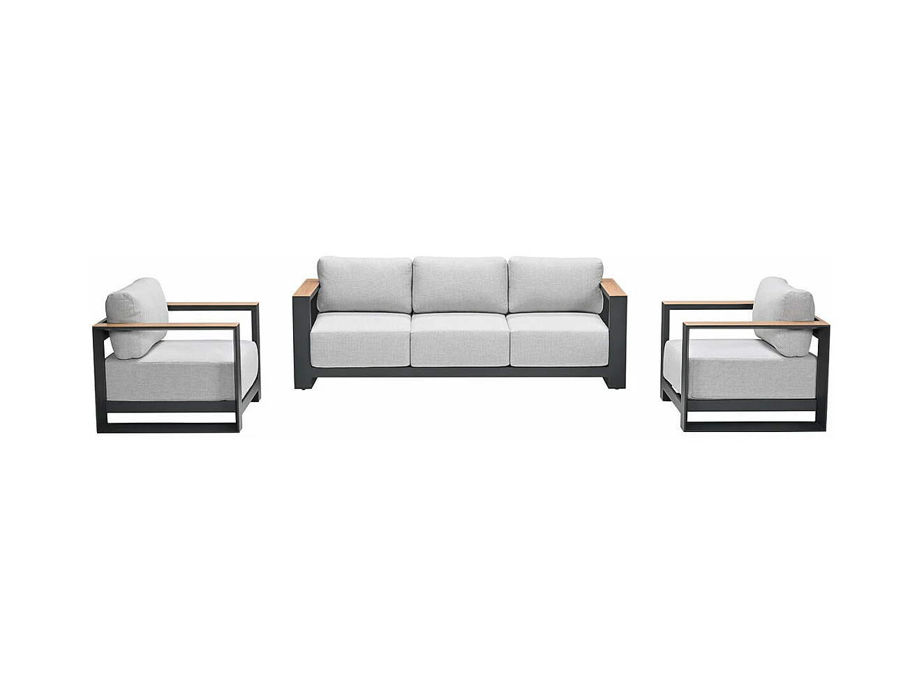 Garden Impressions Malakka loungeset 3 - delig carbon black/valley sand/light teaklook
