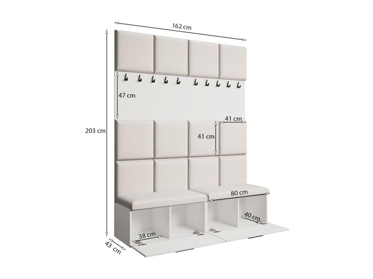 GARDEROBE Margaret I+I 162/203/43 met gestoffeerde panelen en schoenenkast
