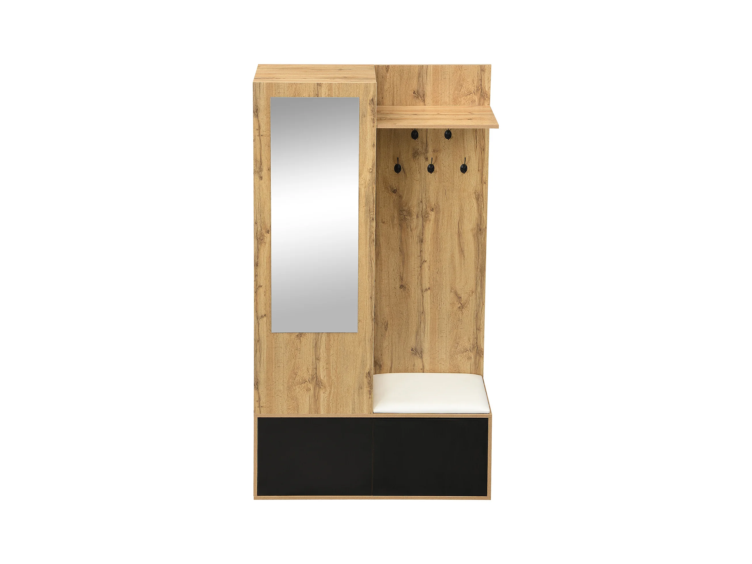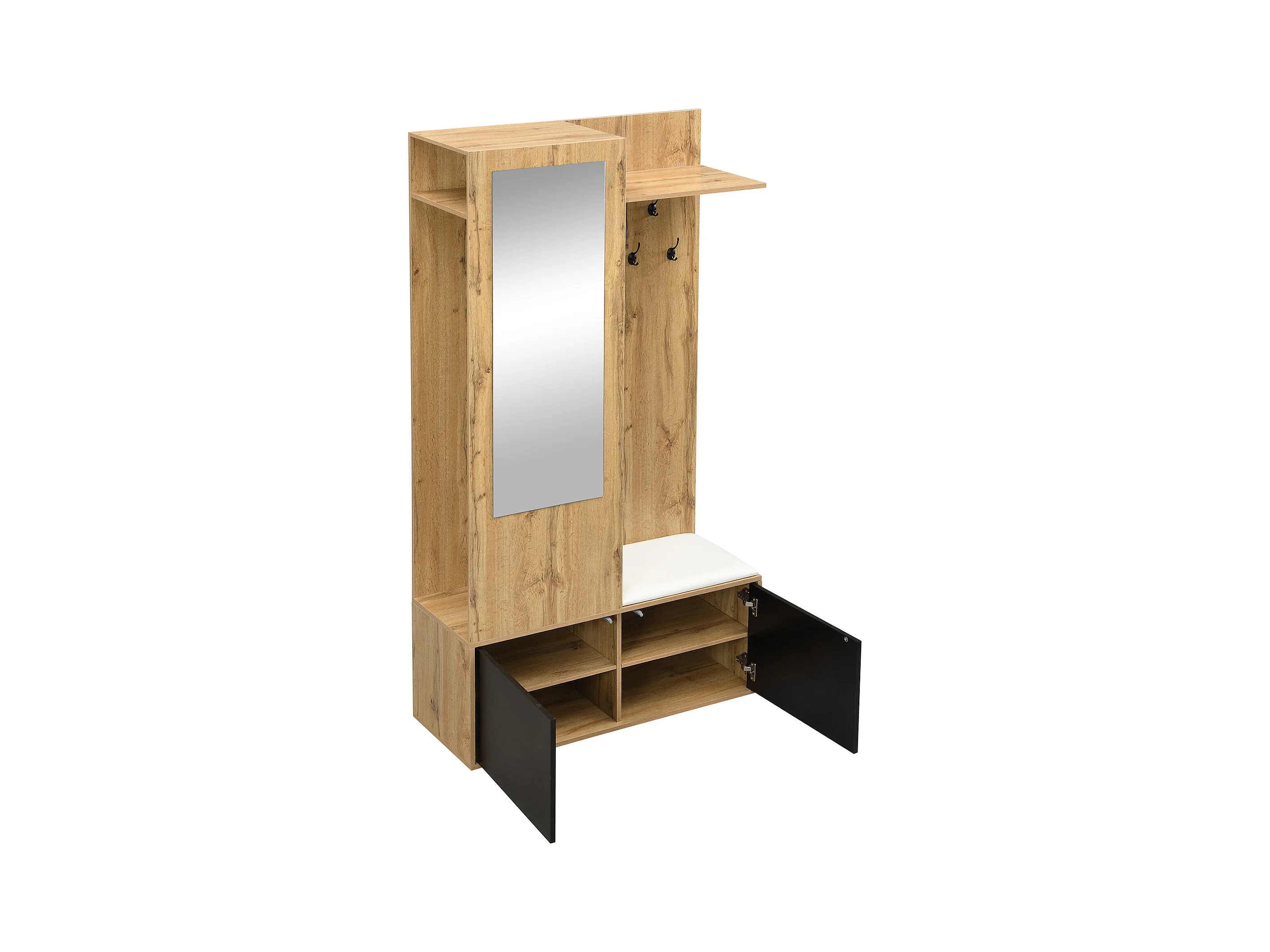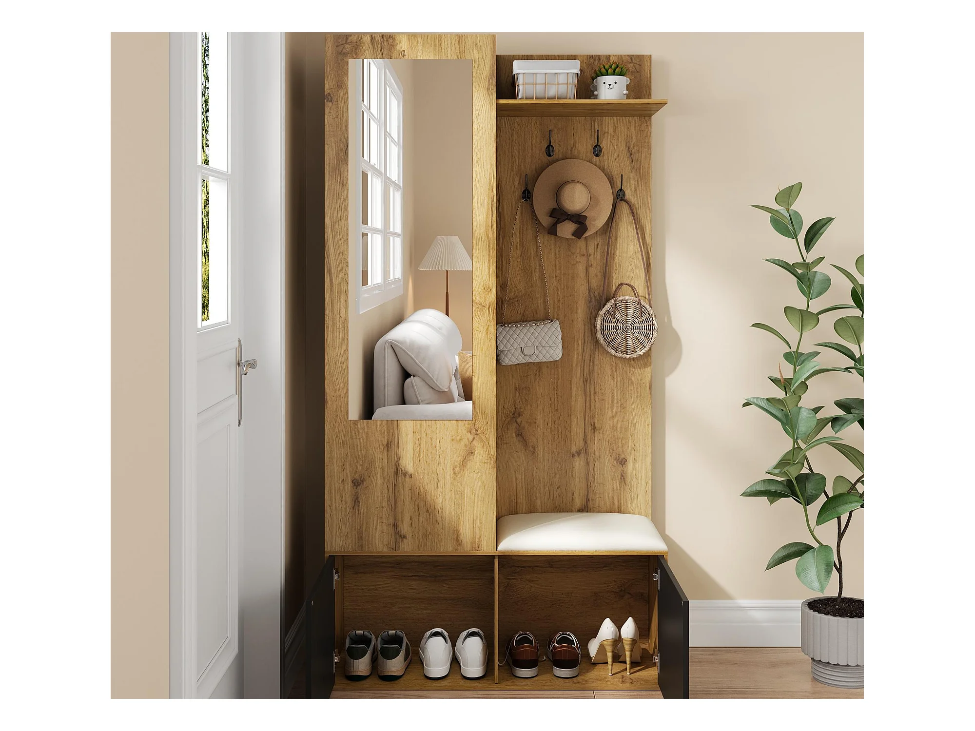 Garderobeset 100×38×191 cm - met kapstok en schoenenkast - haakjes en 1 spiegel - naturel + zwart
