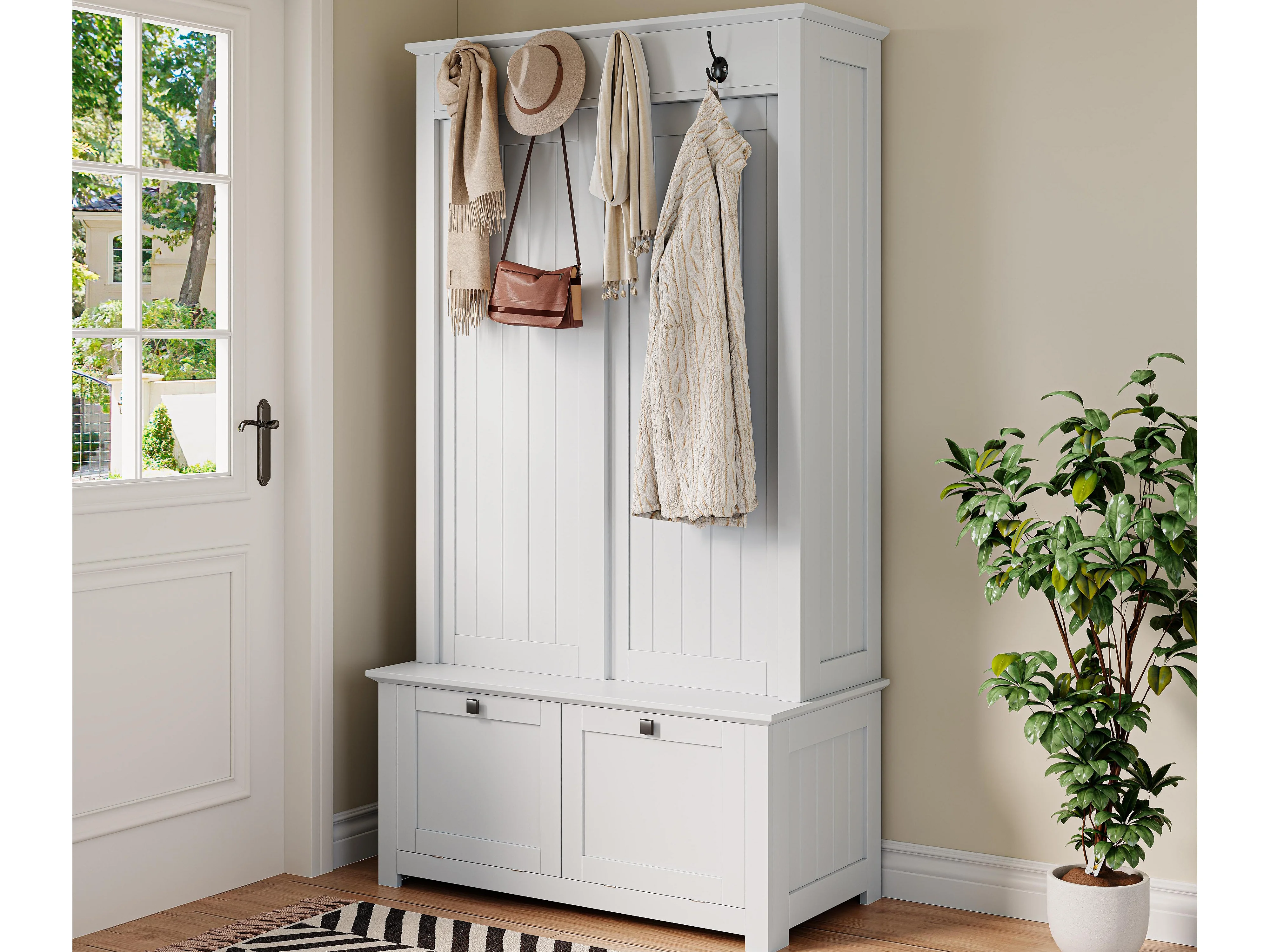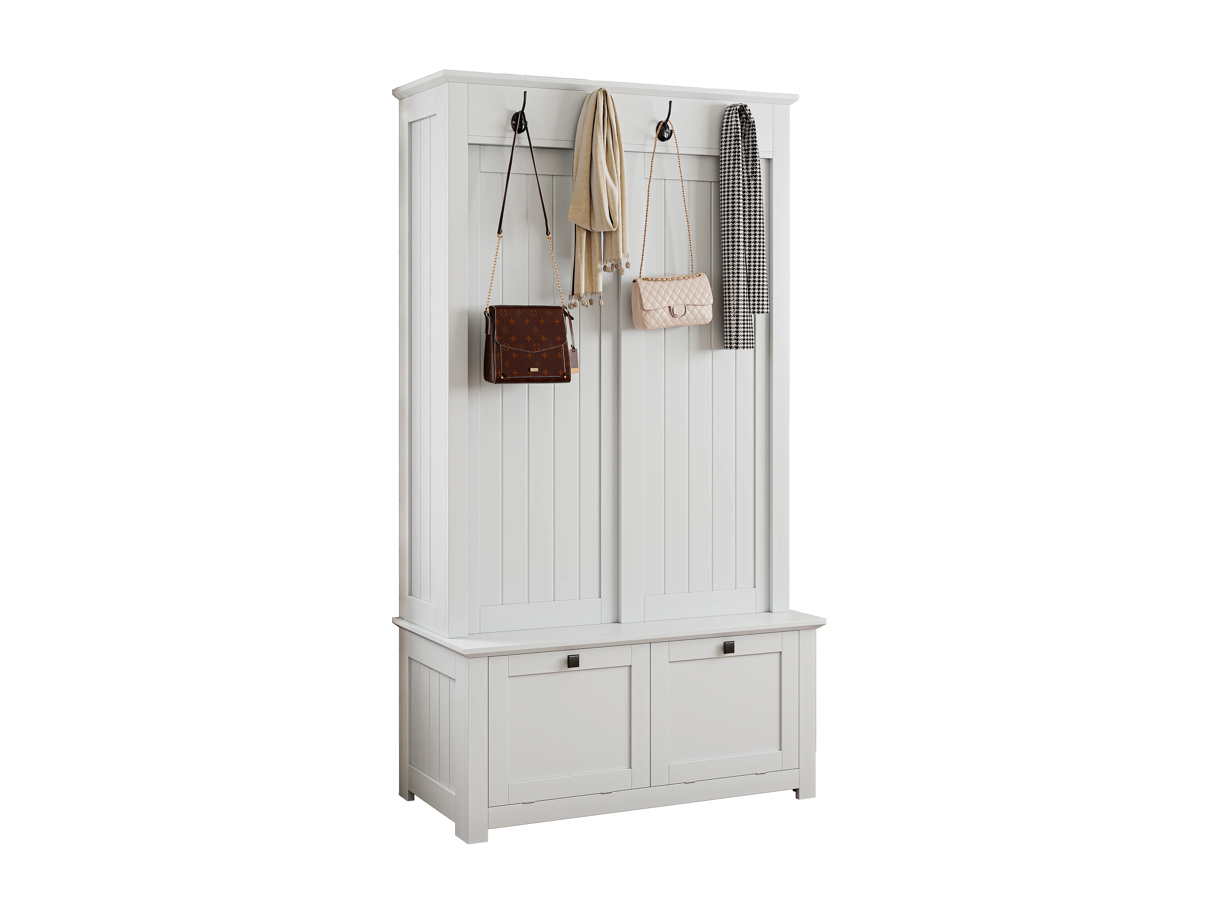 Multifunctionele entreekluis - met kapstok en schoenenopbergbank - MDF - Wit