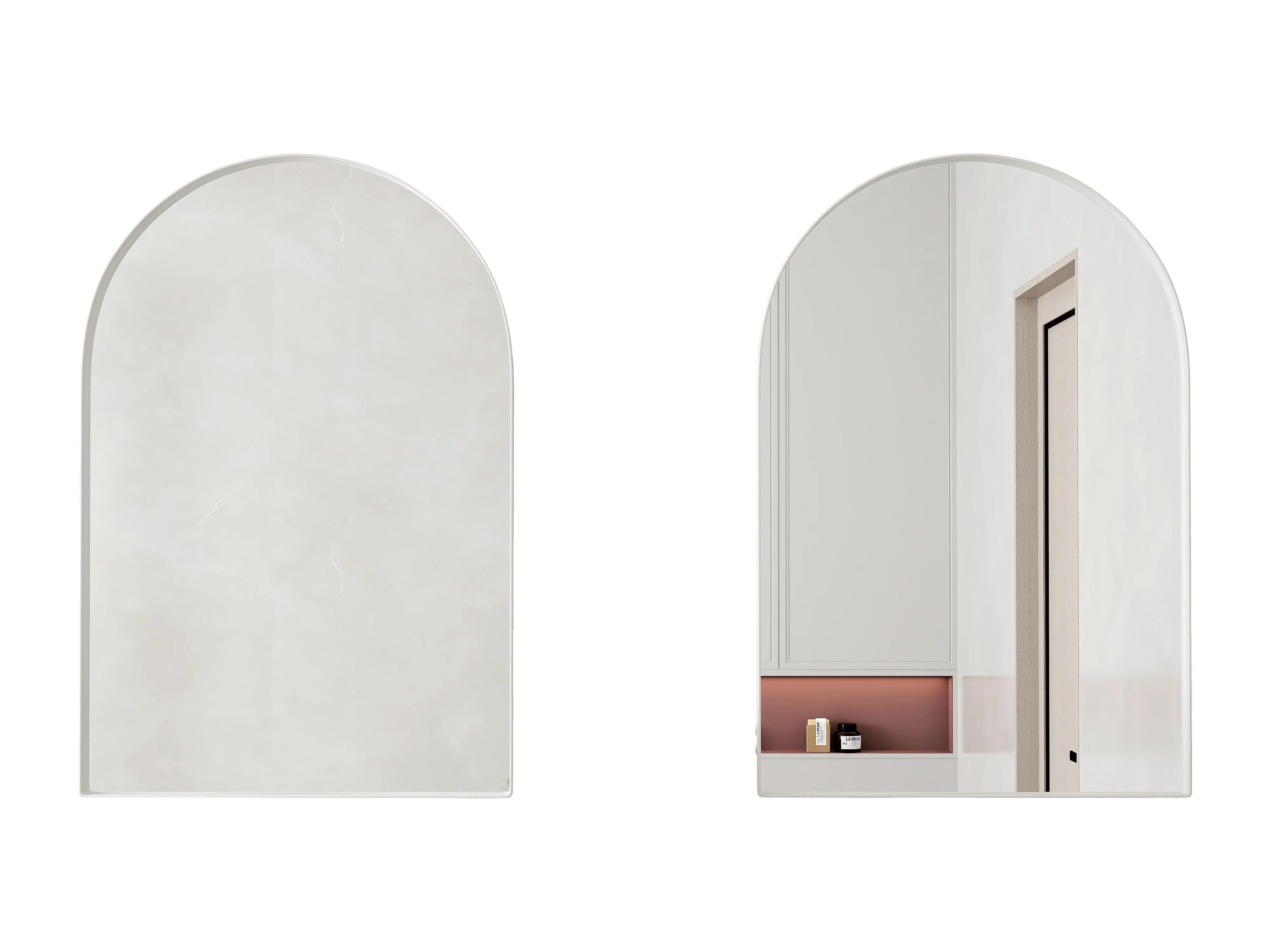 Gebogen spiegel met verborgen opbergruimte - Metalen frame - Wit