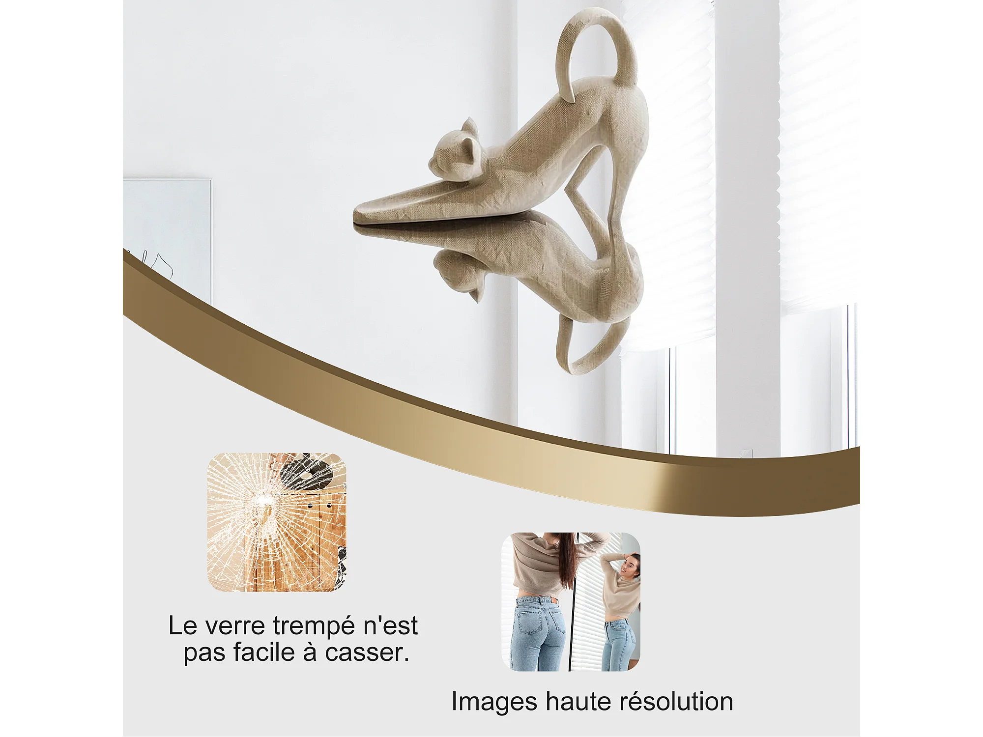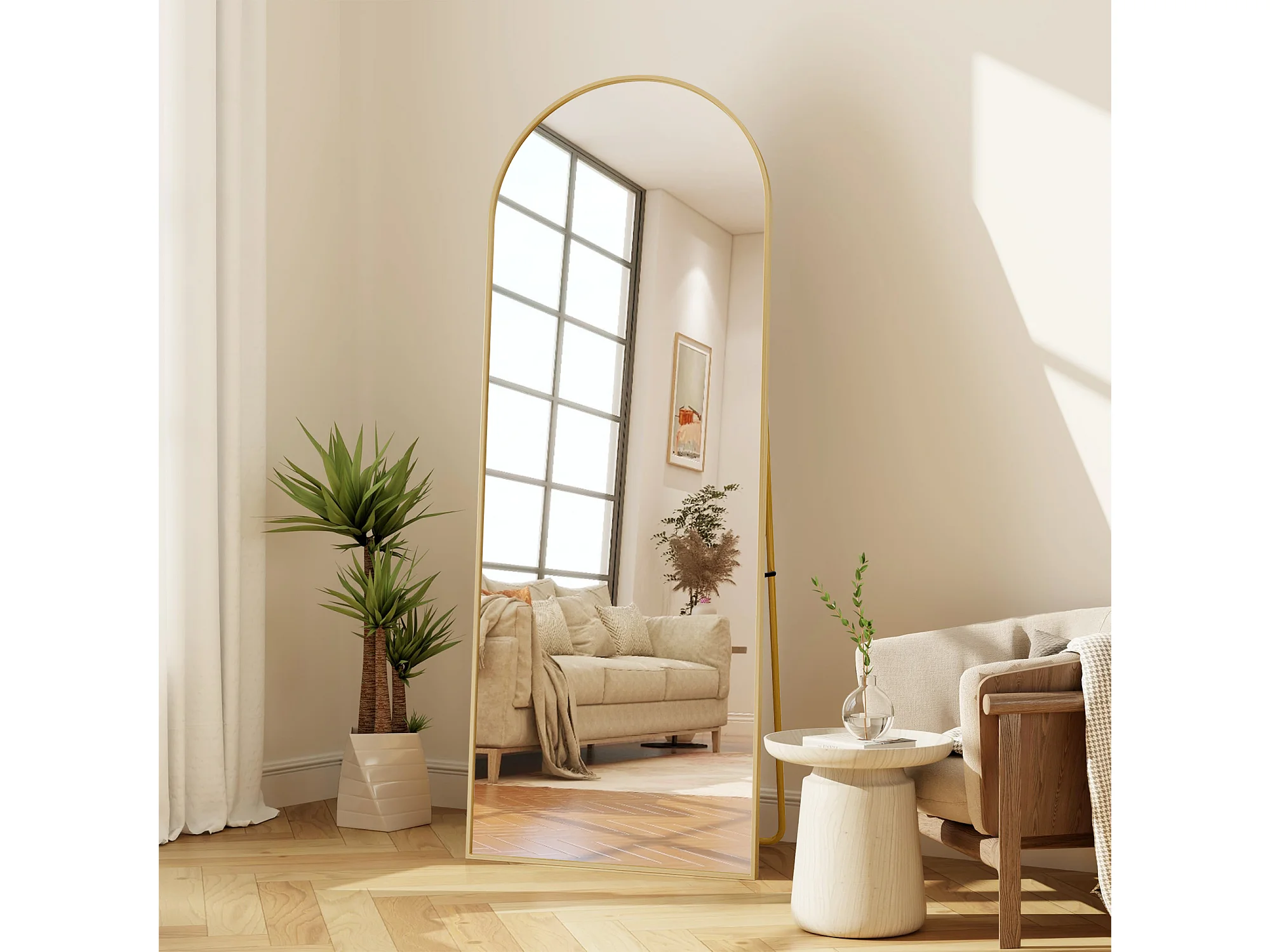 Gebogen staande spiegel 174×63 cm met gouden lijst – Elegant en vintage design, veelzijdig (ophangen of neerzetten)
