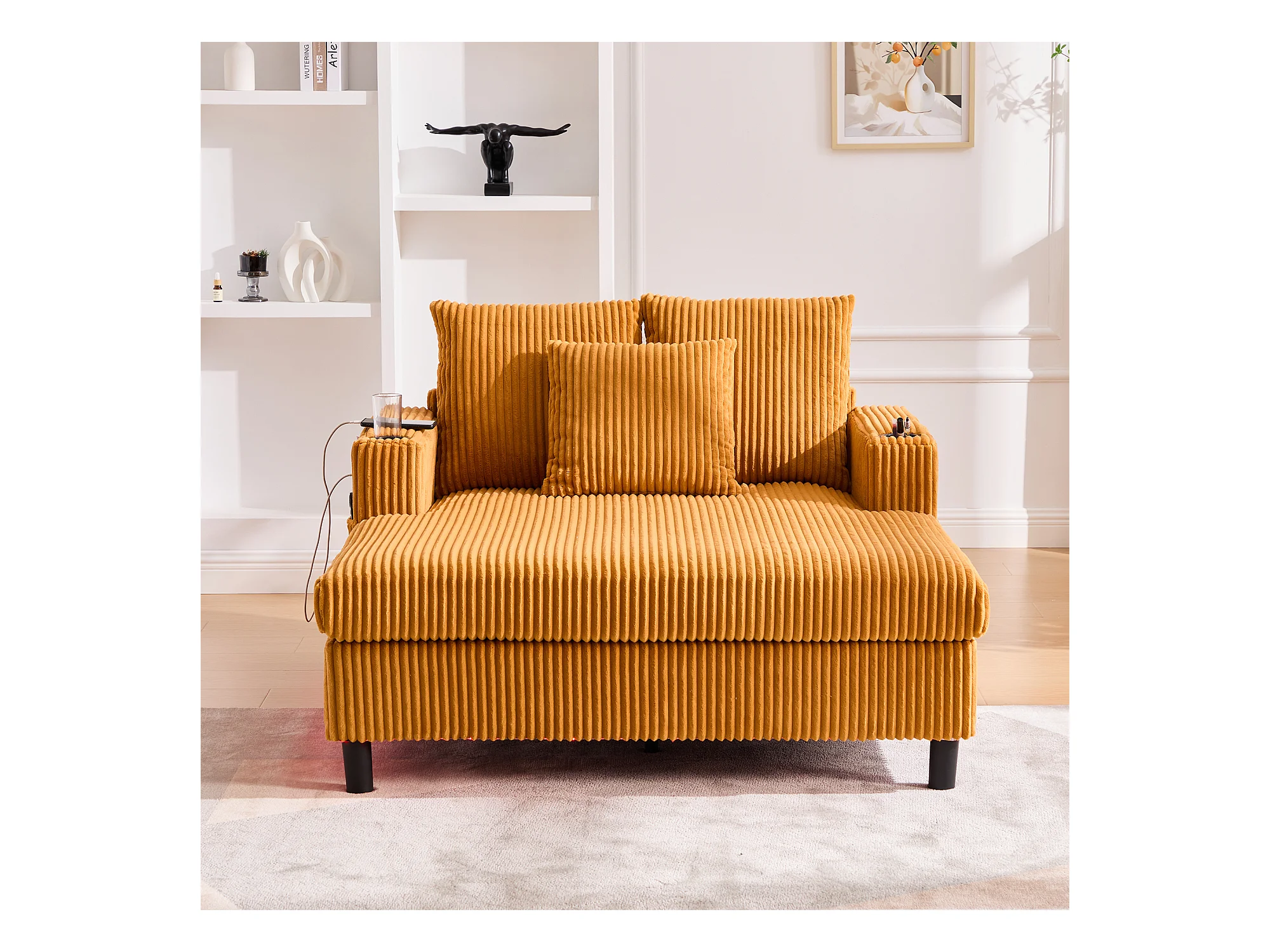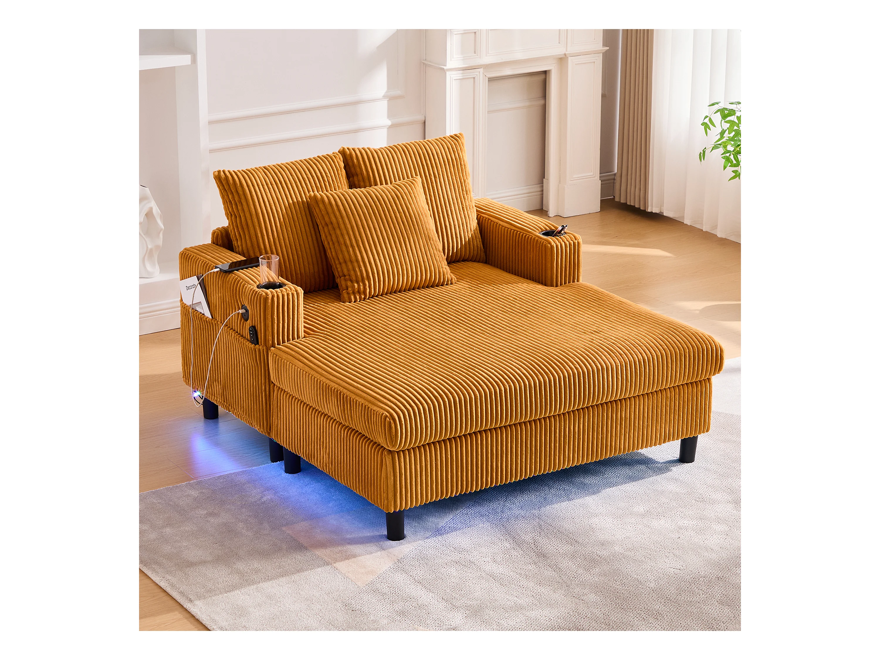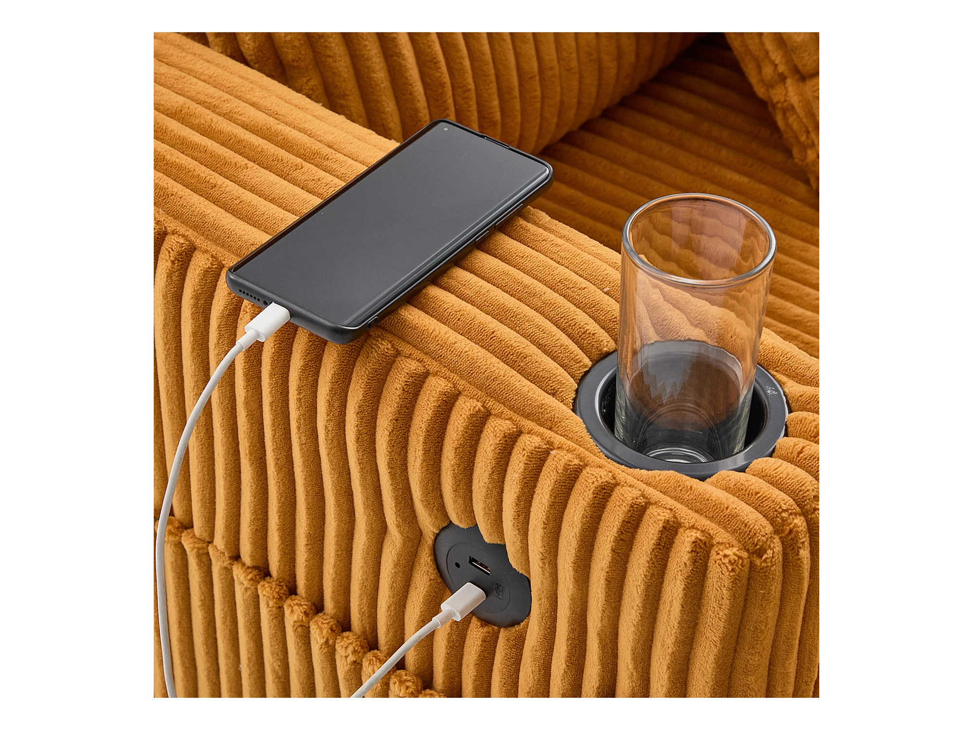 Gele 1-zitsbank - Relaxfauteuil met bekerhouders aan de zijkant en USB-oplaadpoort - LED-sfeerverlichting