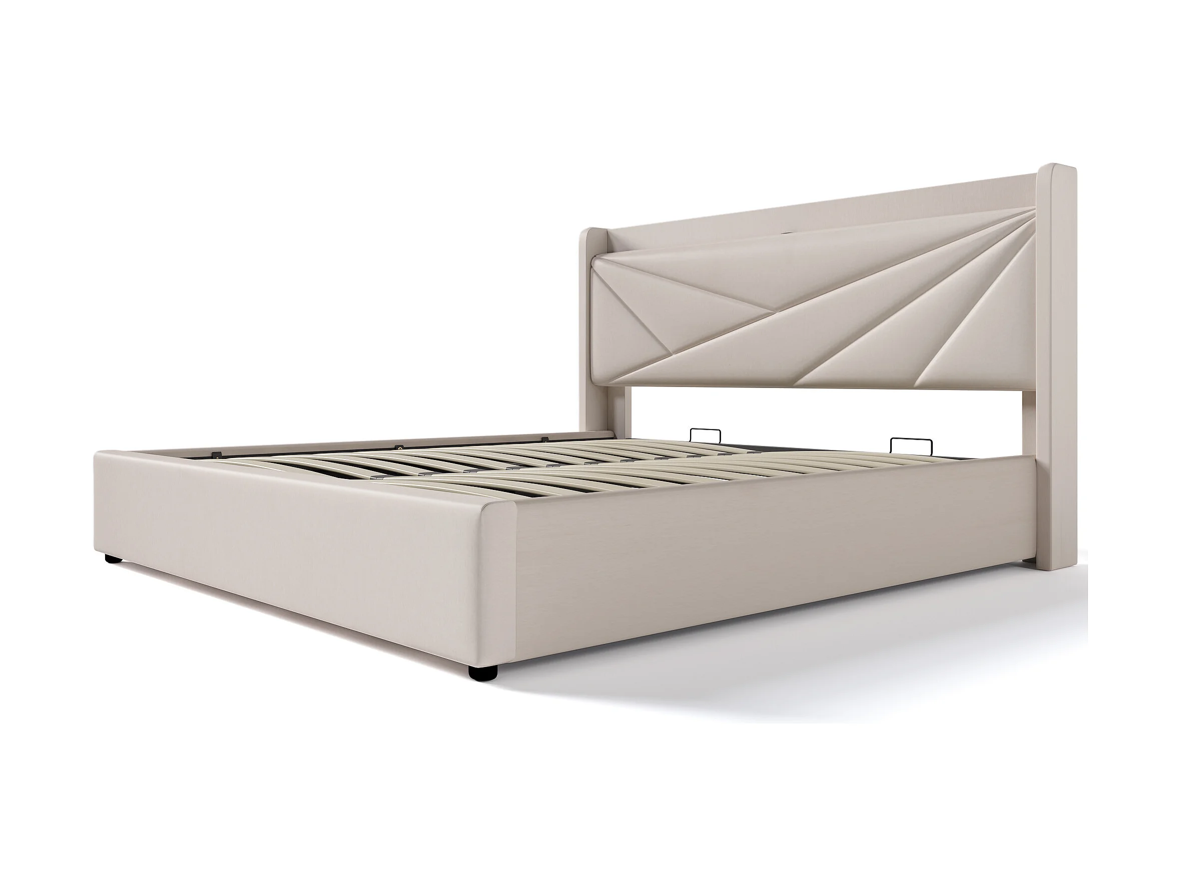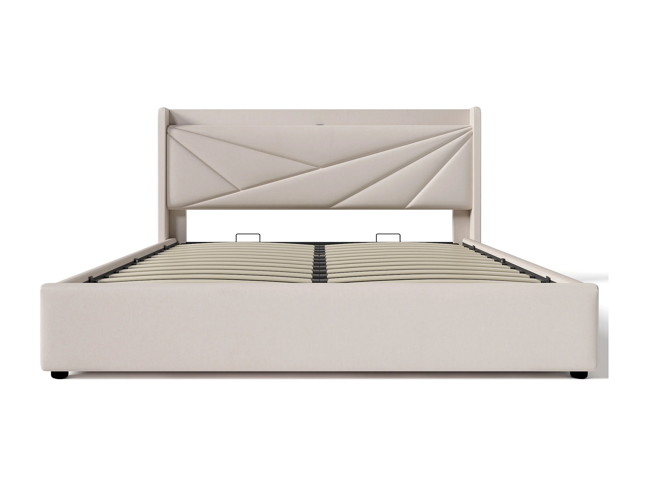 Gepolsterd Bed Tweepersoons Met Opbergruimte 160x200 Cm, Opbergruimte, Hoofdeinde Met USB Type-c, Cadre En Linnen, Met Lattenbodem En Matras