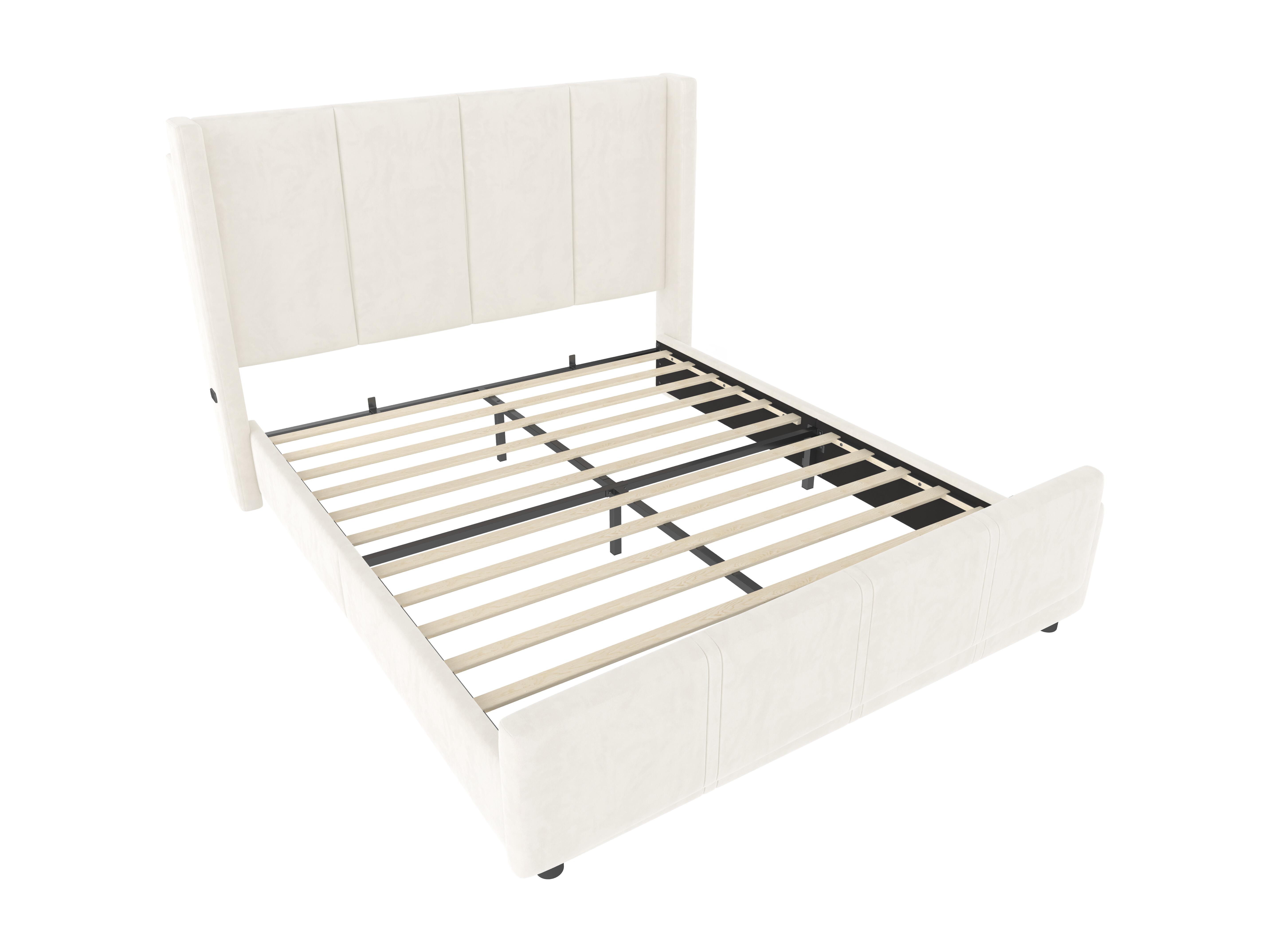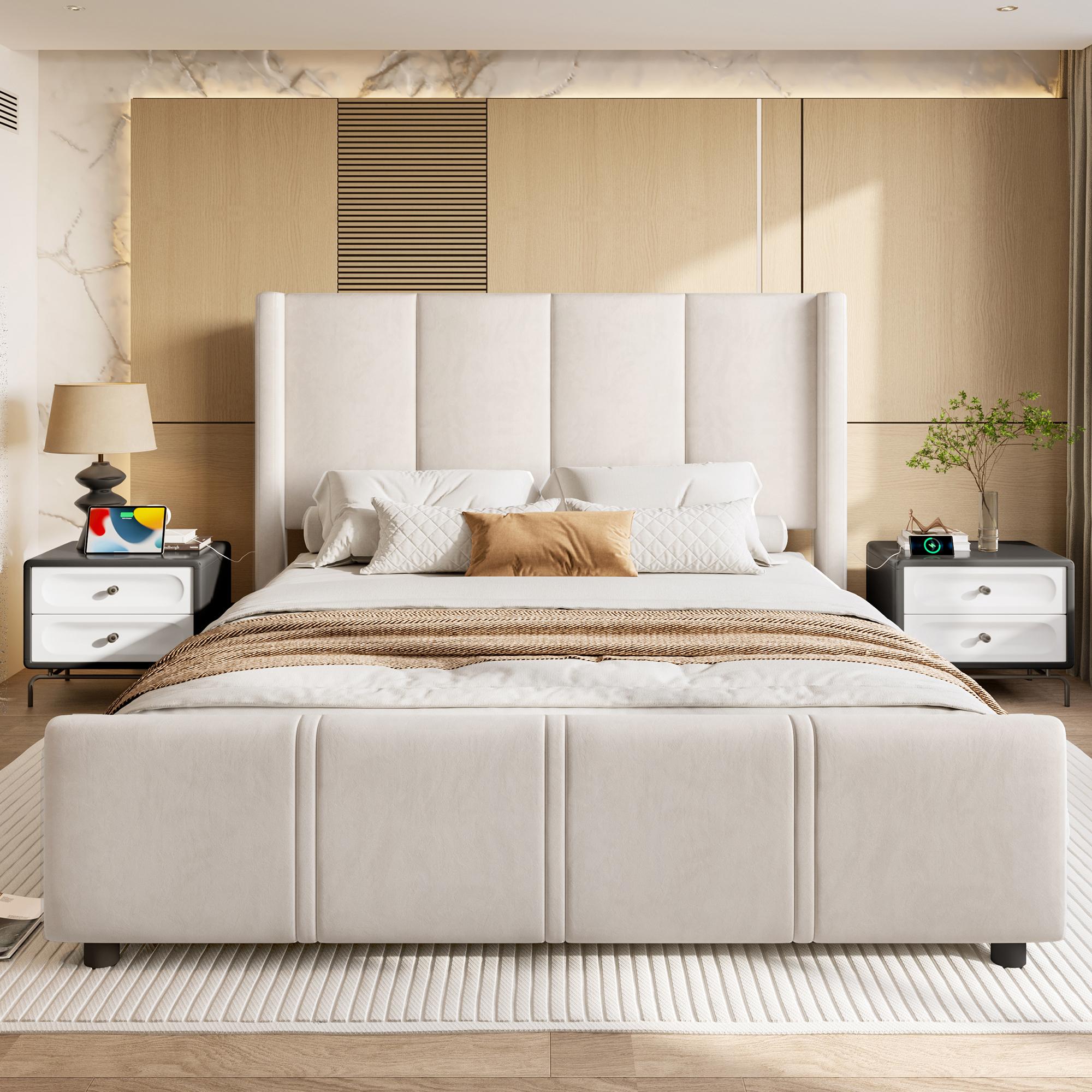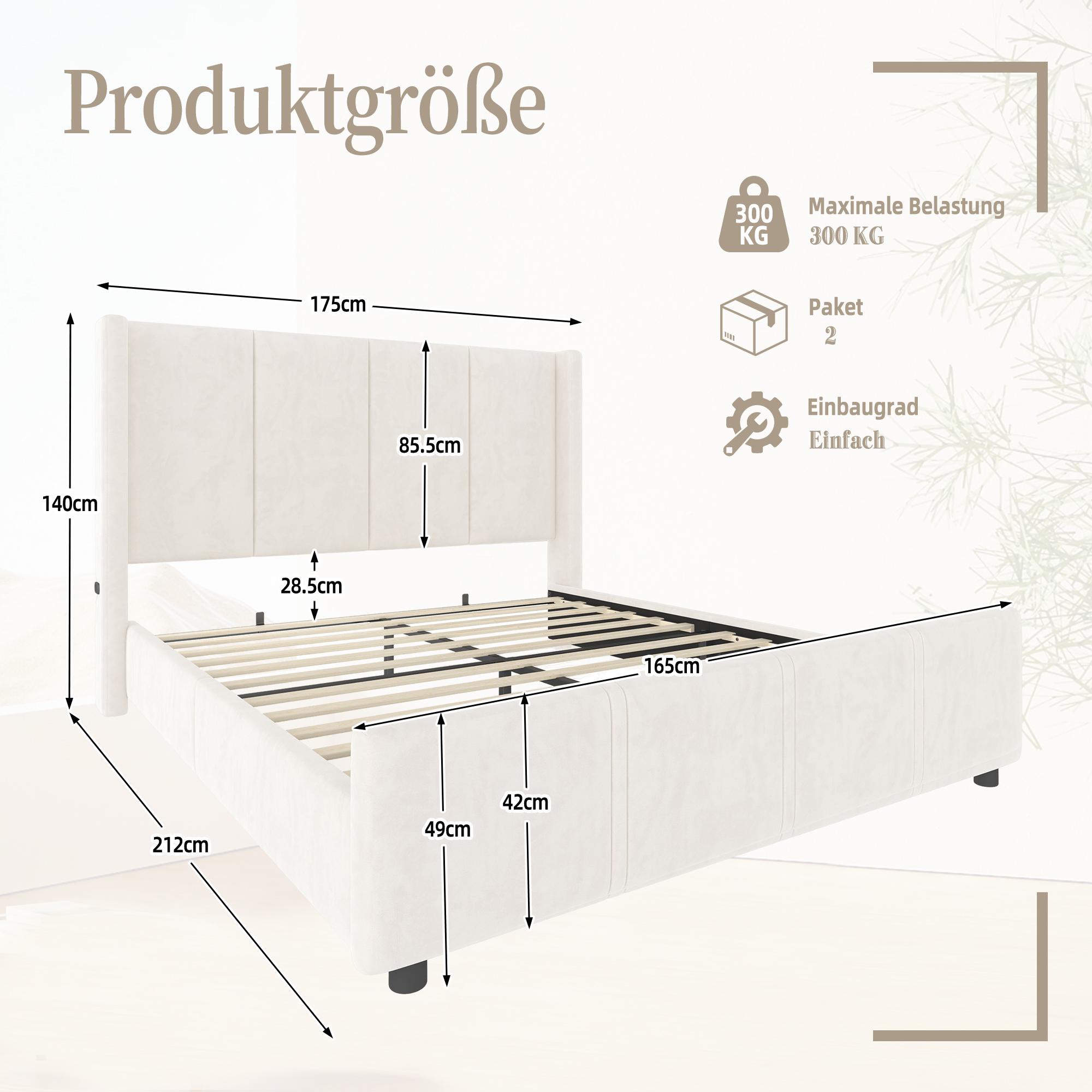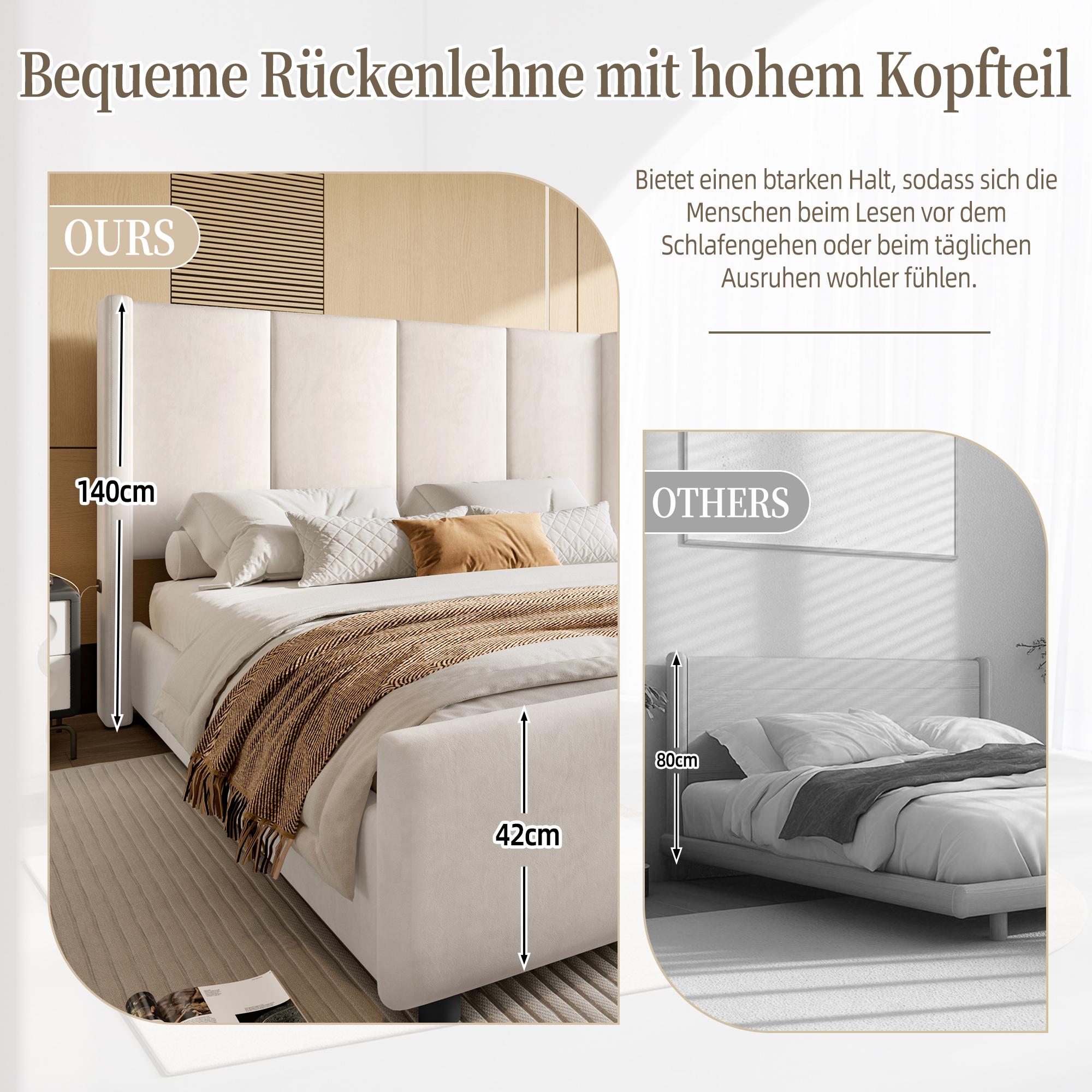 Gepolsterd dubbelbed 160x200 cm - met hoog hoofdeinde & voeteneinde in luxe fluweelstof | Geïntegreerde USB/Type-C aansluiting
