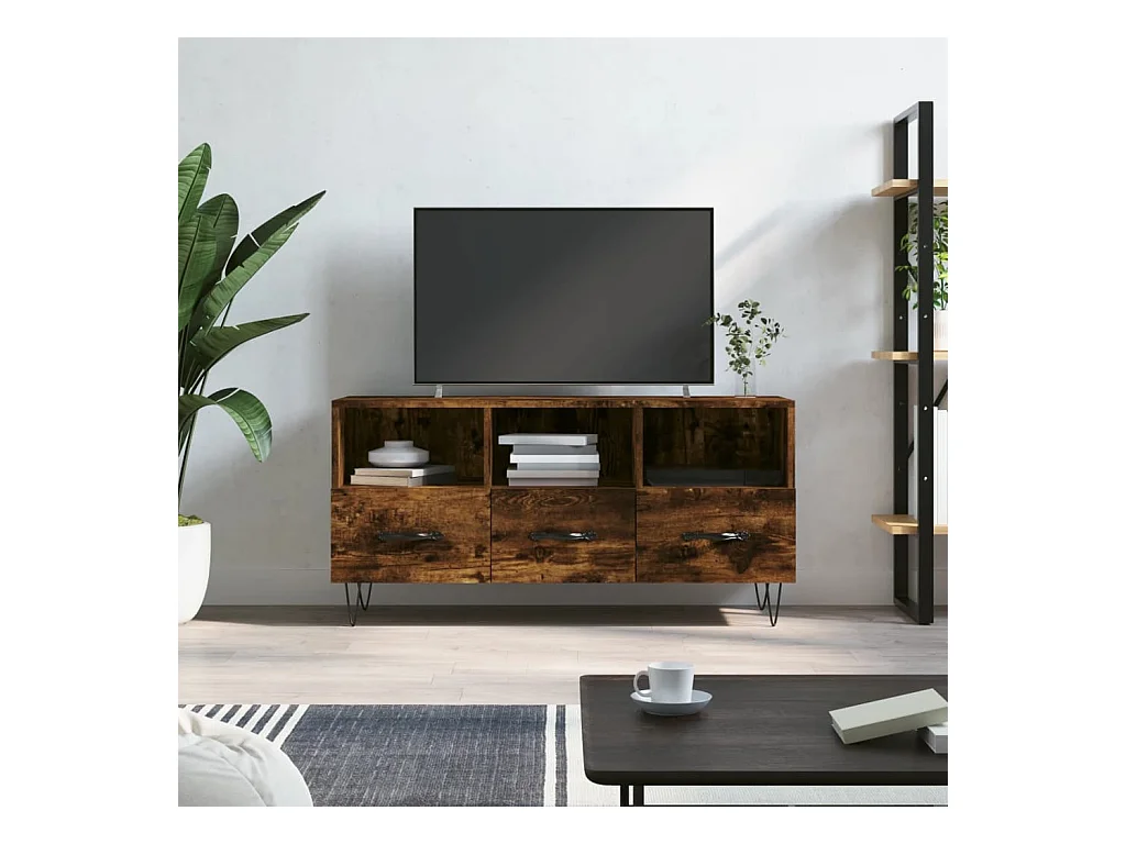 Gerookt eiken tv-meubel 102x36x50 cm bewerkt hout