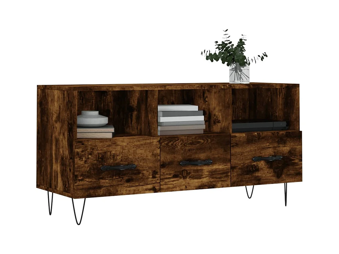 Gerookt eiken tv-meubel 102x44,5x50 cm bewerkt hout