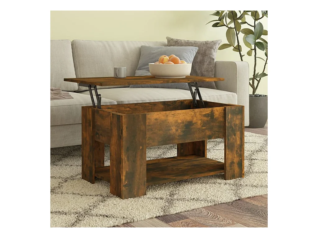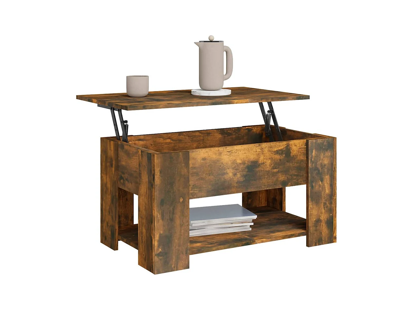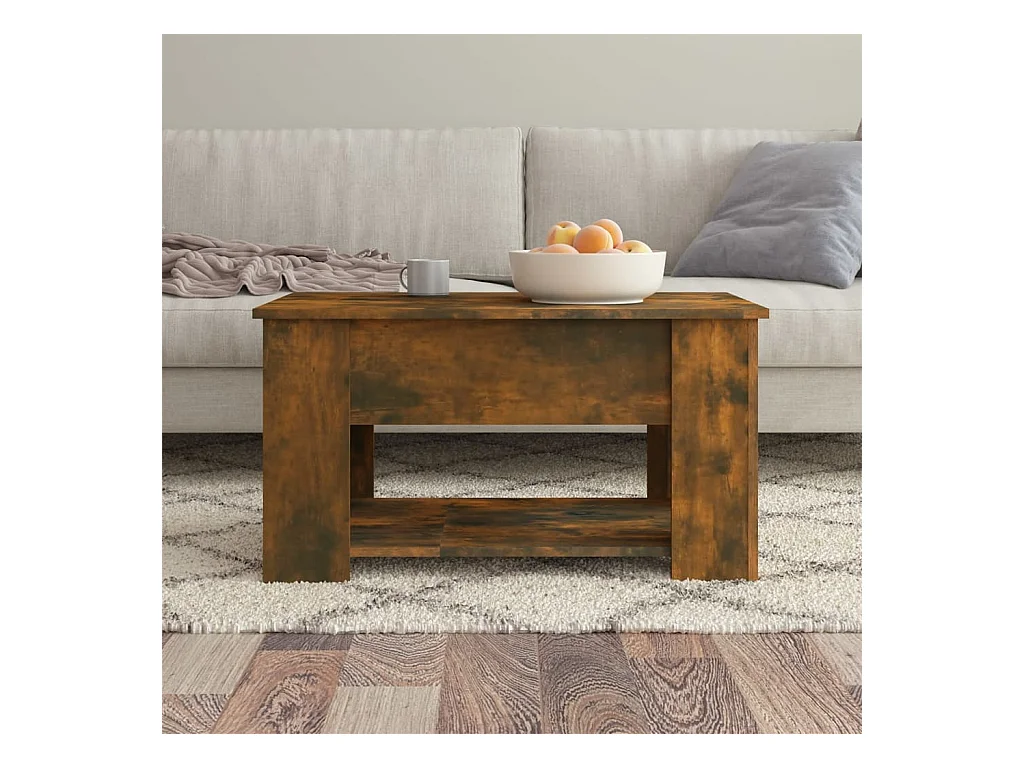 Gerookte eiken salontafel 79x49x41 cm bewerkt hout