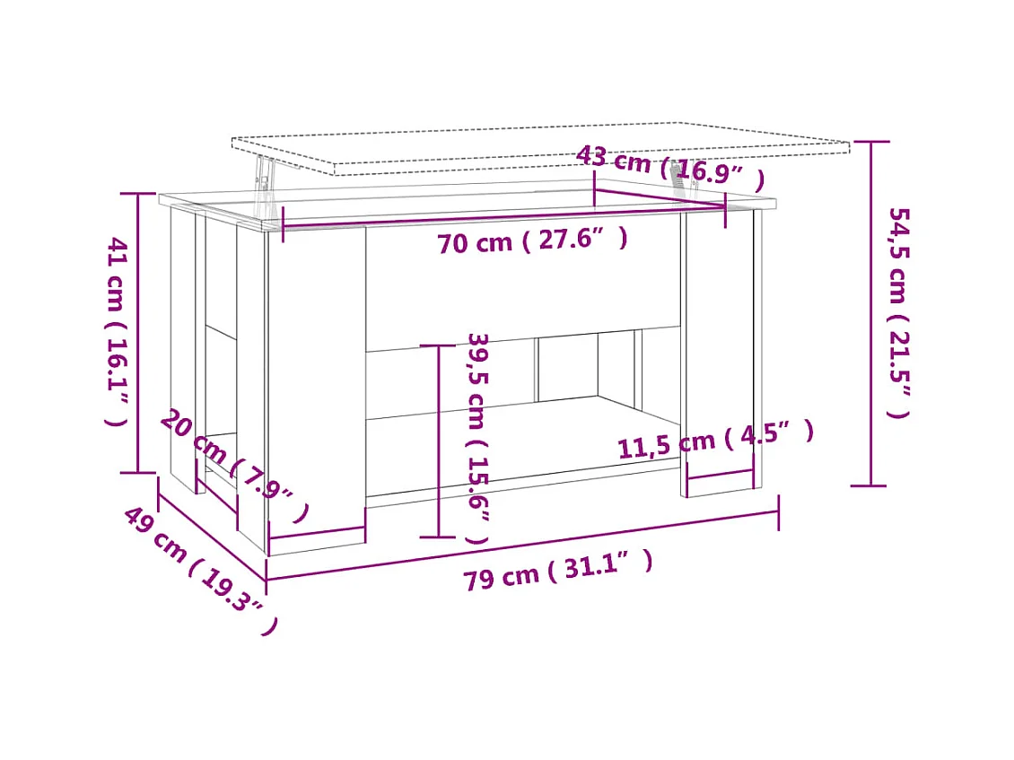 Sonoma eiken salontafel 79x49x41 cm bewerkt hout