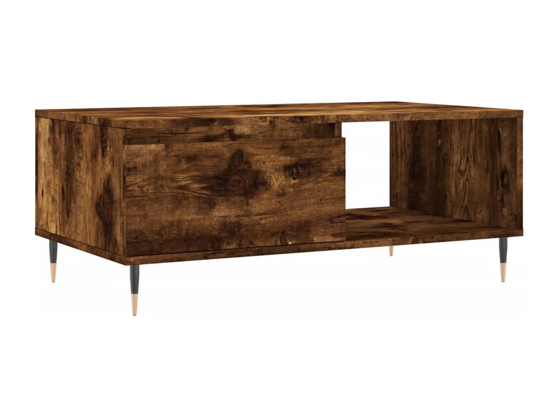 Gerookte eiken salontafel 90x50x36,5 cm bewerkt hout