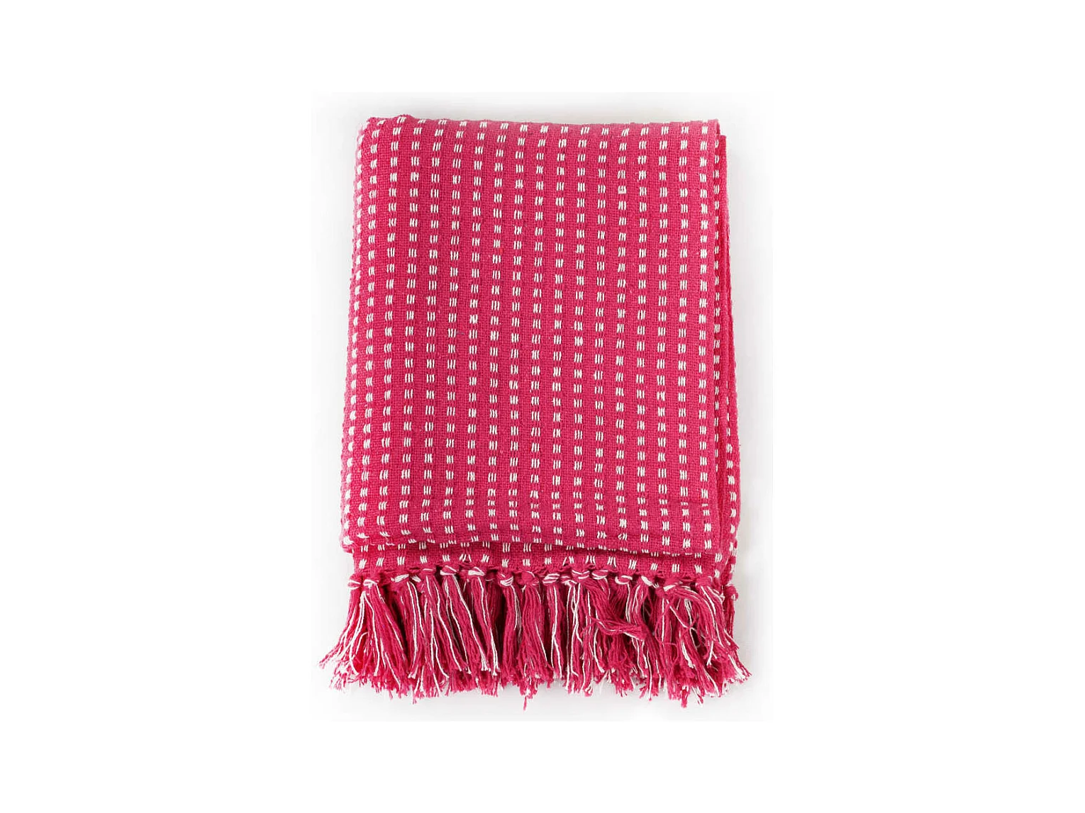 Plaid strepen 125x150 cm katoen roze en wit BE637791