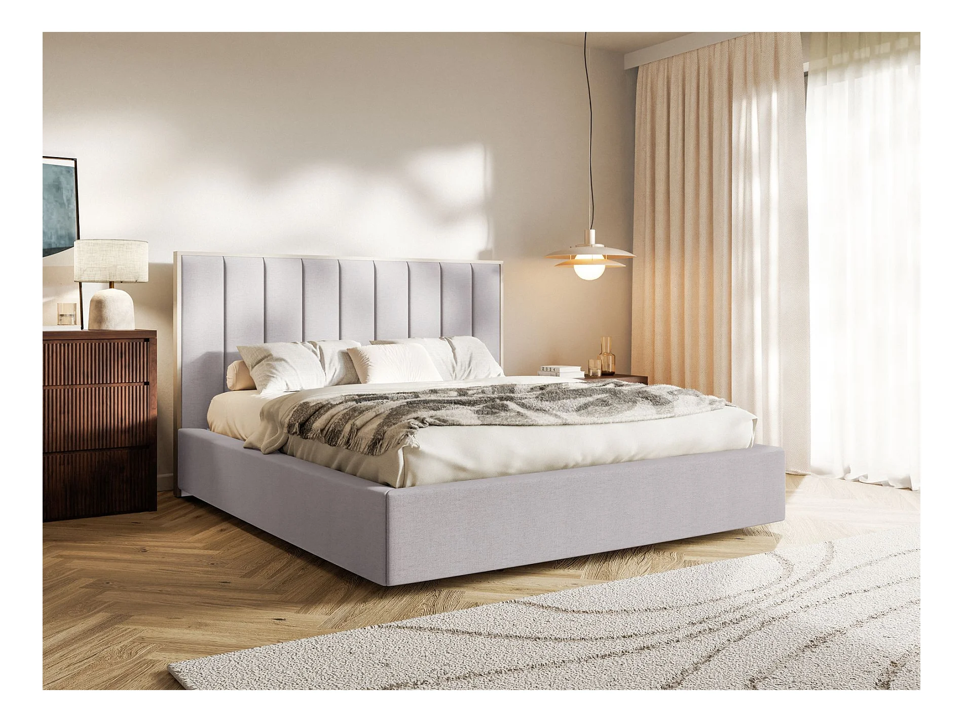 Gestoffeerd bed – 140x200 cm – in lichtgrijze chenillestof – UMIKE