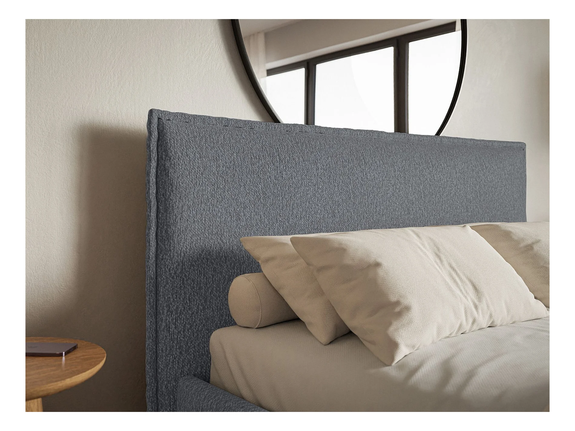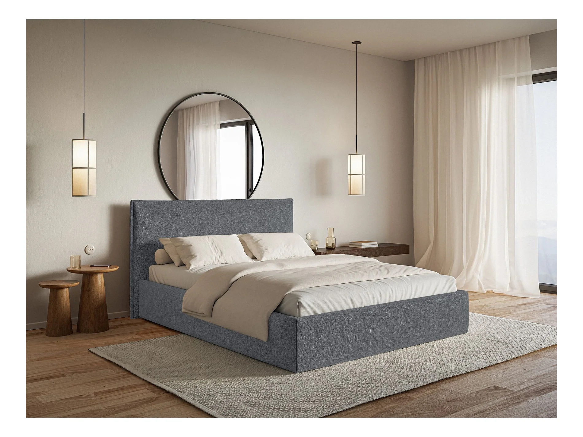 Gestoffeerd bed – 140x200 cm – in lichtgrijze chenillestof – UMIKE