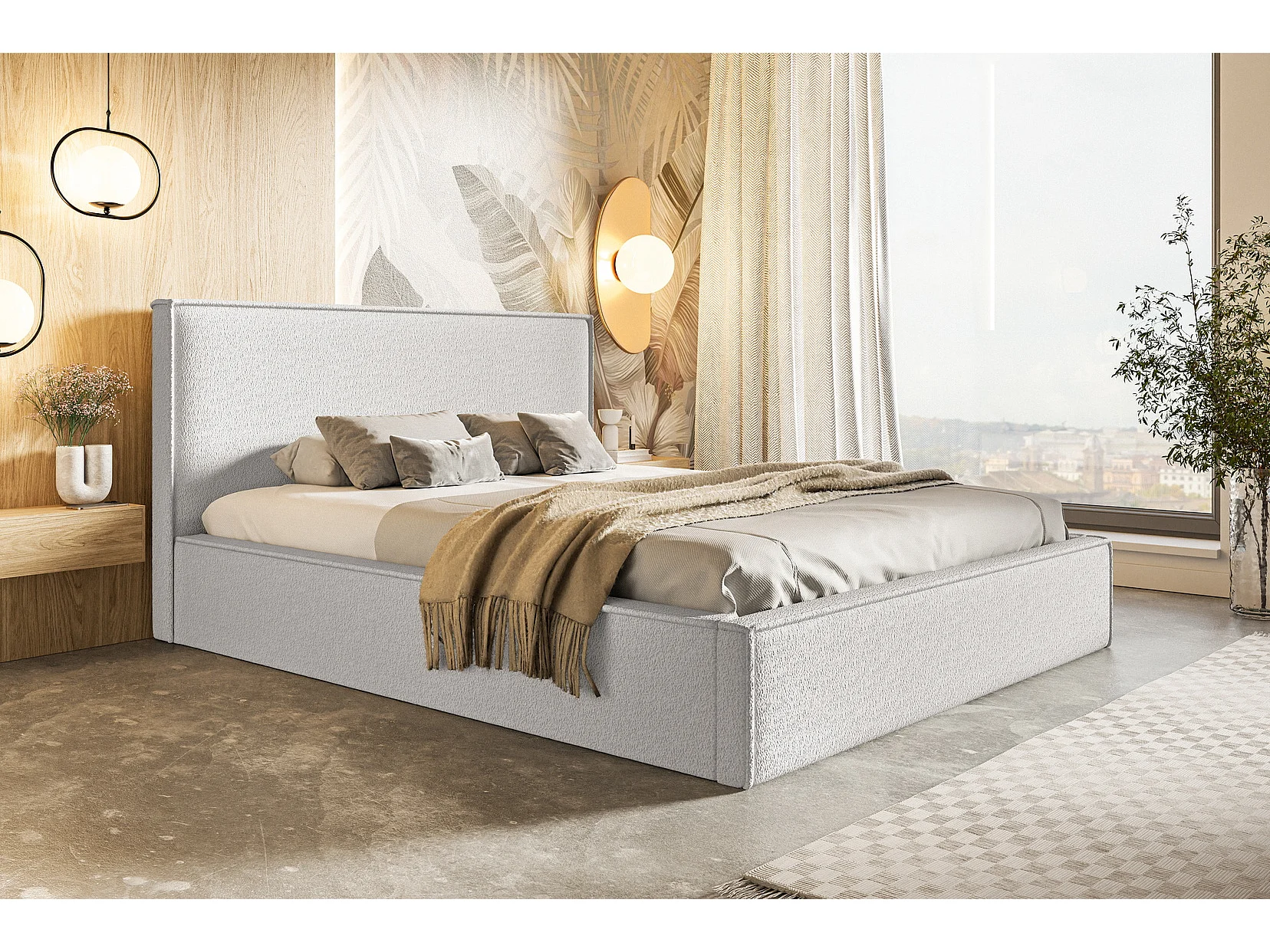 Gestoffeerd bed 140x200 Kyoto - tweepersoonsbed met opbergruimte, metalen lattenbodem - Bouclé Crème (Anthology 1)