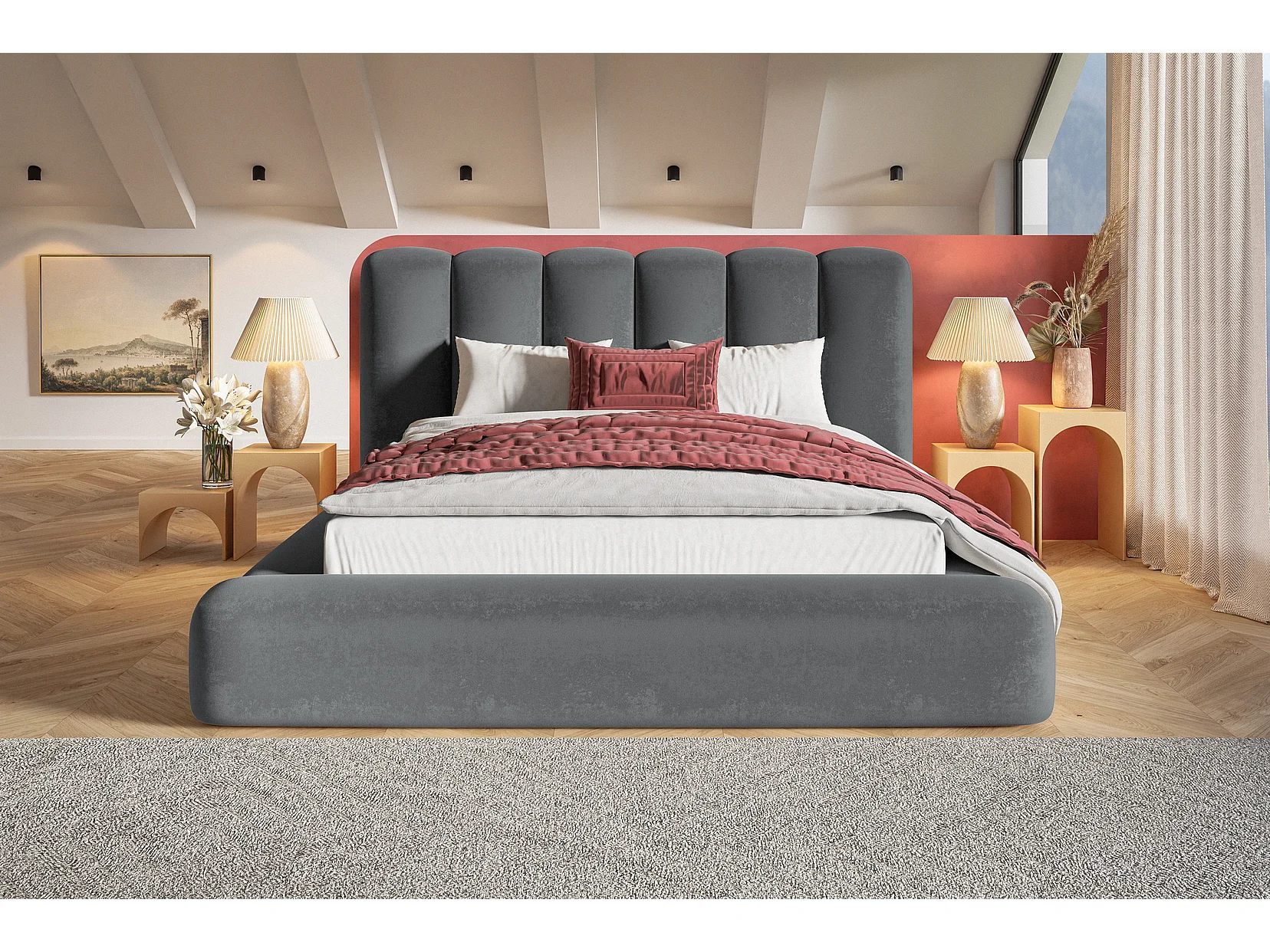 Gestoffeerd bed 140x200 Lumaro met opbergruimte - lattenbodem, Donkergrijs (Amor Velvet 4321)