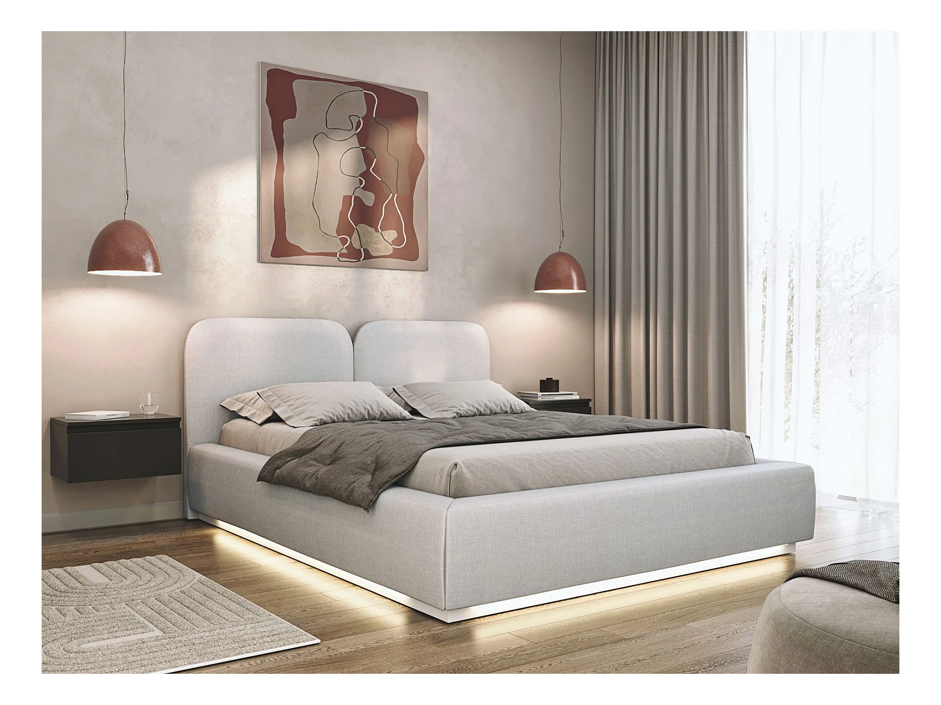 Gestoffeerd bed 140x200 met chenille bekleding – LED – Lichtgrijs – COMOVES